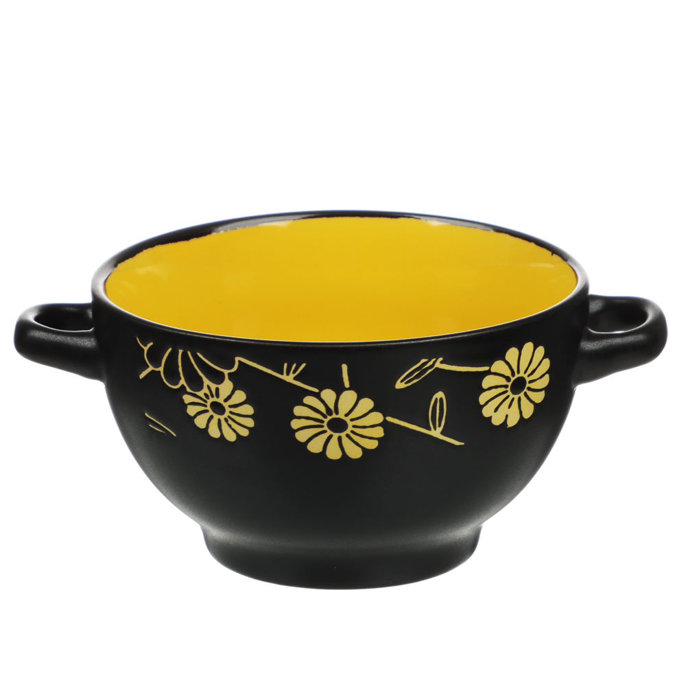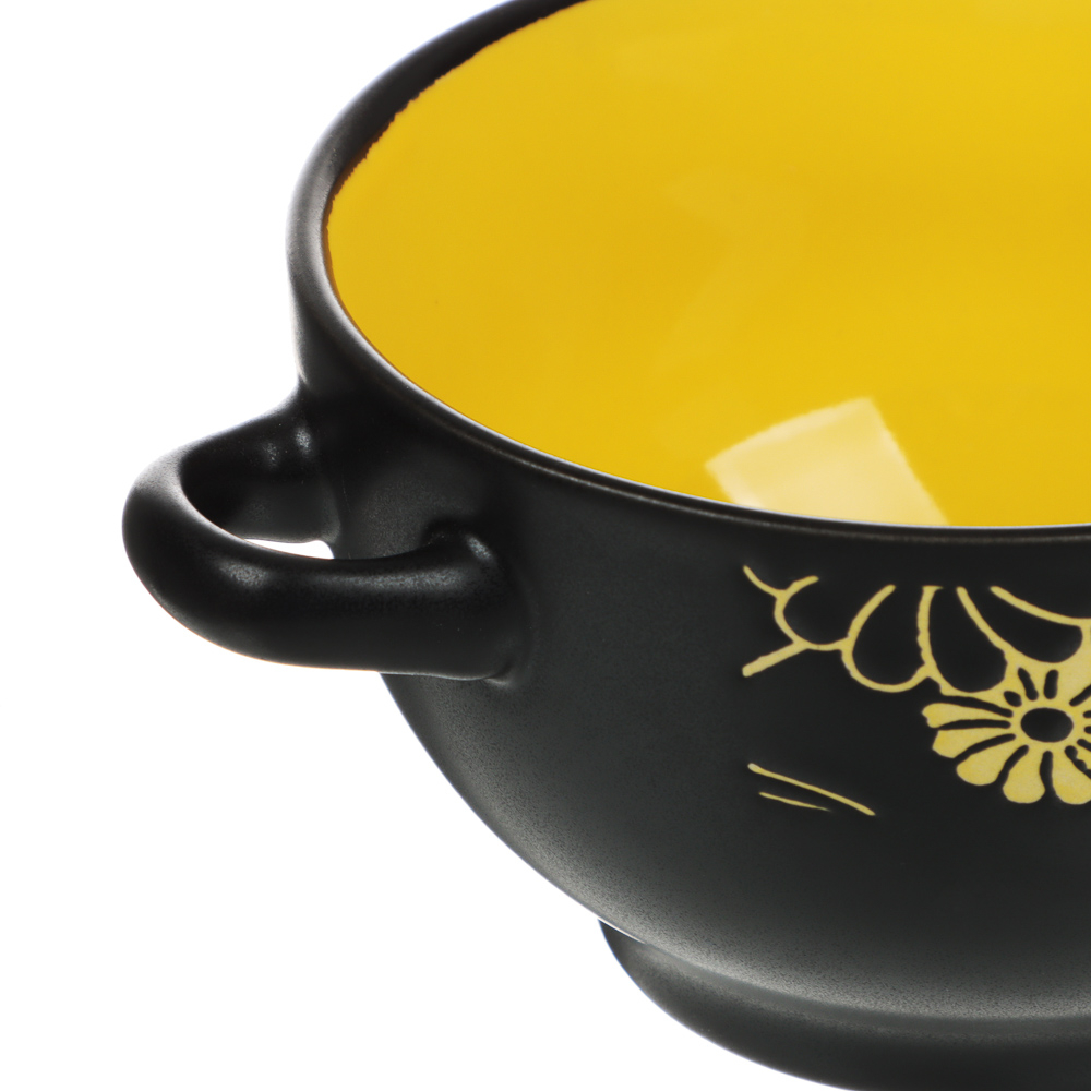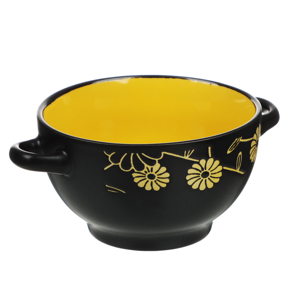 Стильный предмет сервировки предназначен для подачи первых блюд. Для удобства предусмотрены ручки по бокам емкости. Материал изделия – высокопрочная натуральная керамика.