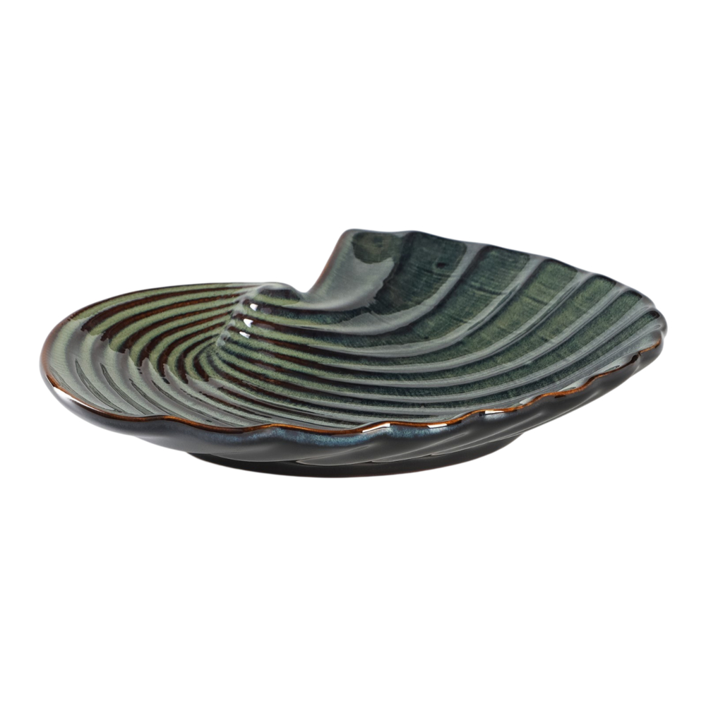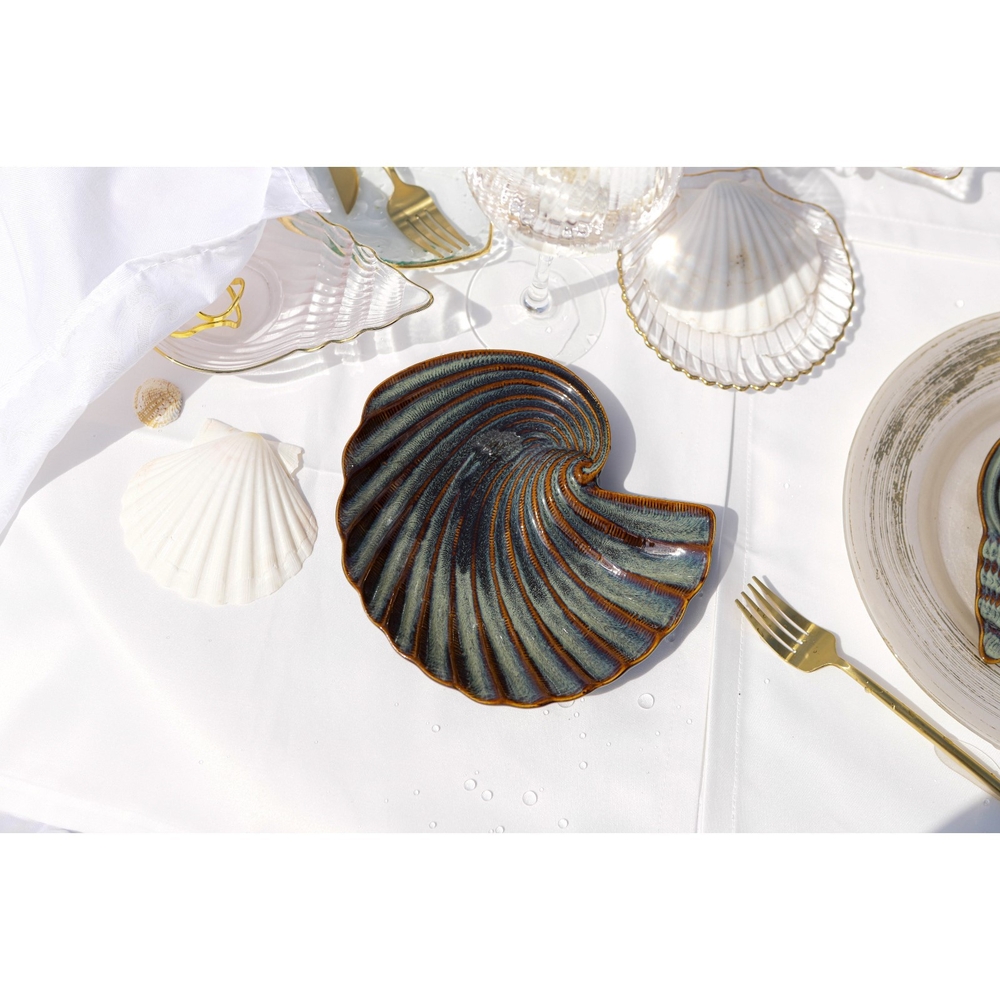 Керамическое блюдо в форме ракушки – это стильный аксессуар для подачи закусок, фруктов или десертов.