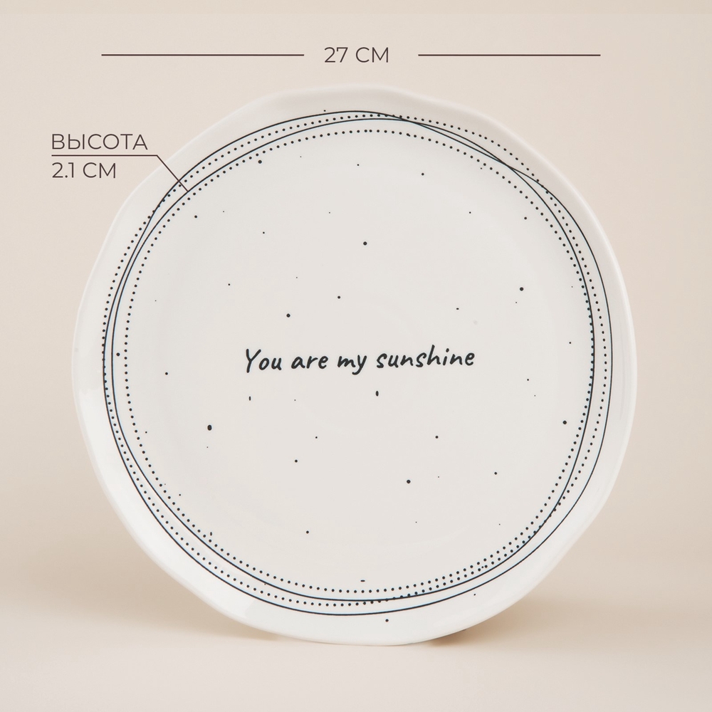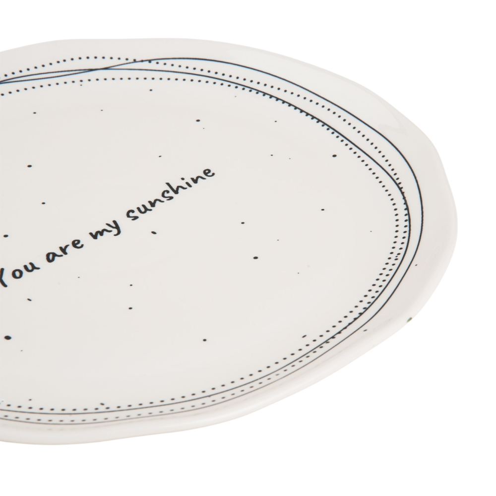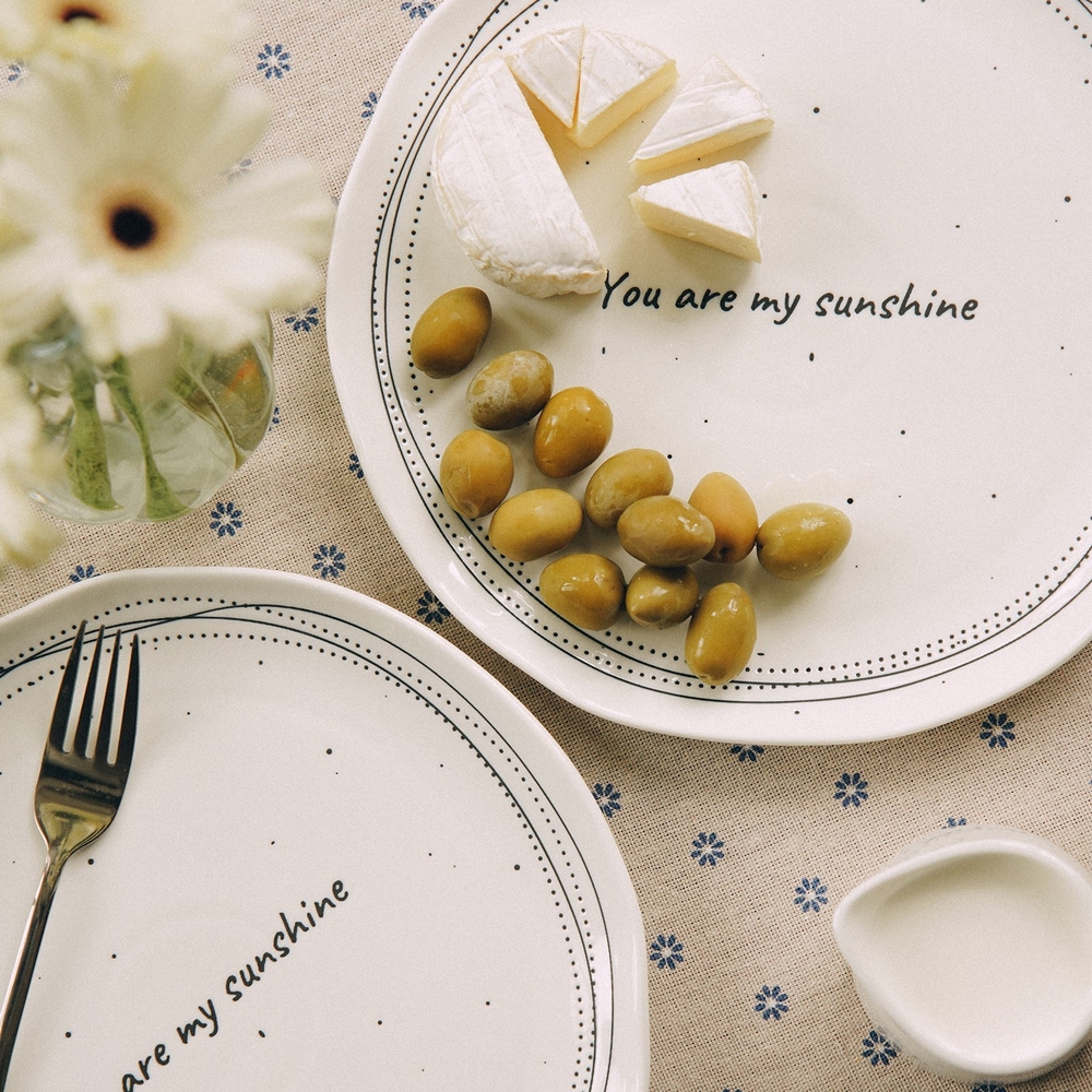 Белоснежная посуда с надписями, такими как "You are my sunshine" и "Enjoy little things", создаёт атмосферу уюта и тепла в вашем доме. Изящный рельеф и минималистичные линии вдохновлены стилем ручной керамики, который подчёркивает естественность и гармонию. Каждое изделие будто приглашает замедлиться и насладиться моментом.