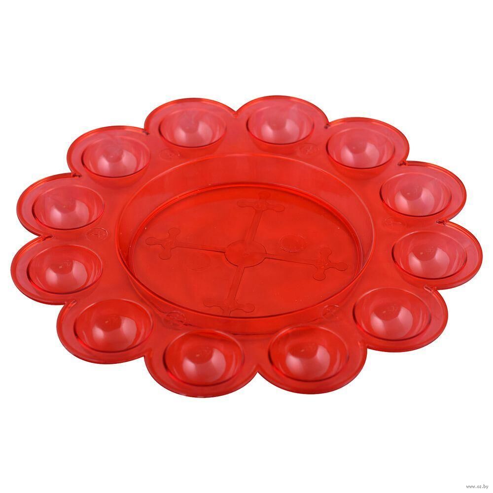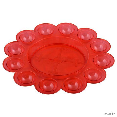 Блюдо имеет одно углубление под кулич, диаметром не более 13 см и 12 углублений под яйца.