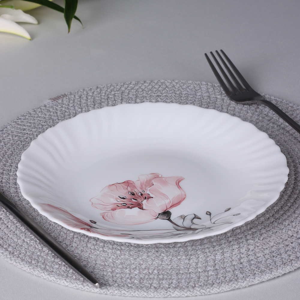 Опаловое стекло придает тарелке легкость и воздушность, оставаясь при этом прочным и практичным.