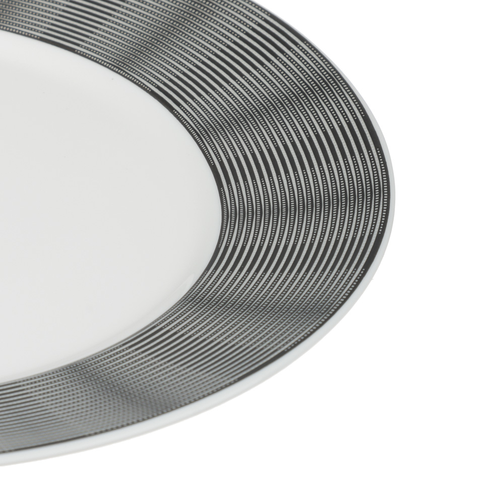 Изготовлена из высококачественного опалового стекла, устойчивого к царапинам. Белый глянцевый центр подчеркивает цвет блюд, а текстурированный графитовый край придаёт изделию элегантный и минималистичный вид.