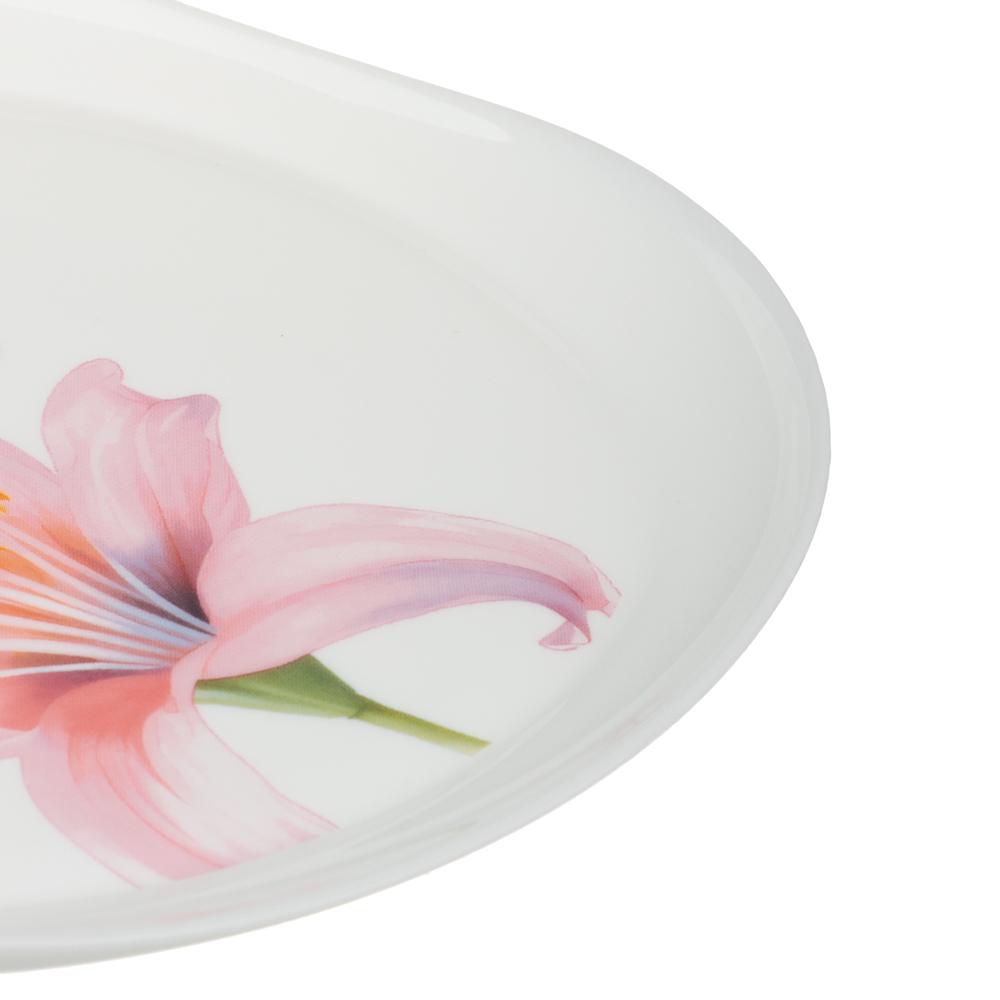 Нежный принт делает тарелку выразительной и одновременно деликатной, оживляя сервировку и добавляя в неё яркий, но ненавязчивый акцент.