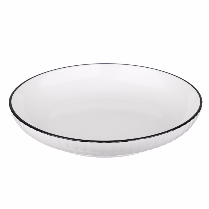 Благодаря глубокому бортику тарелка подходит для подачи любых вторых блюд: рагу, пасты, салатов и даже десертов.