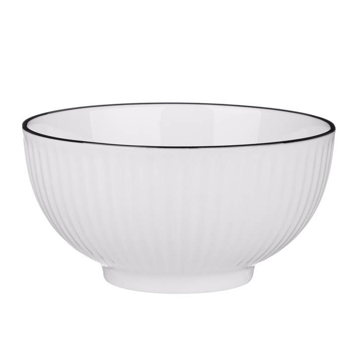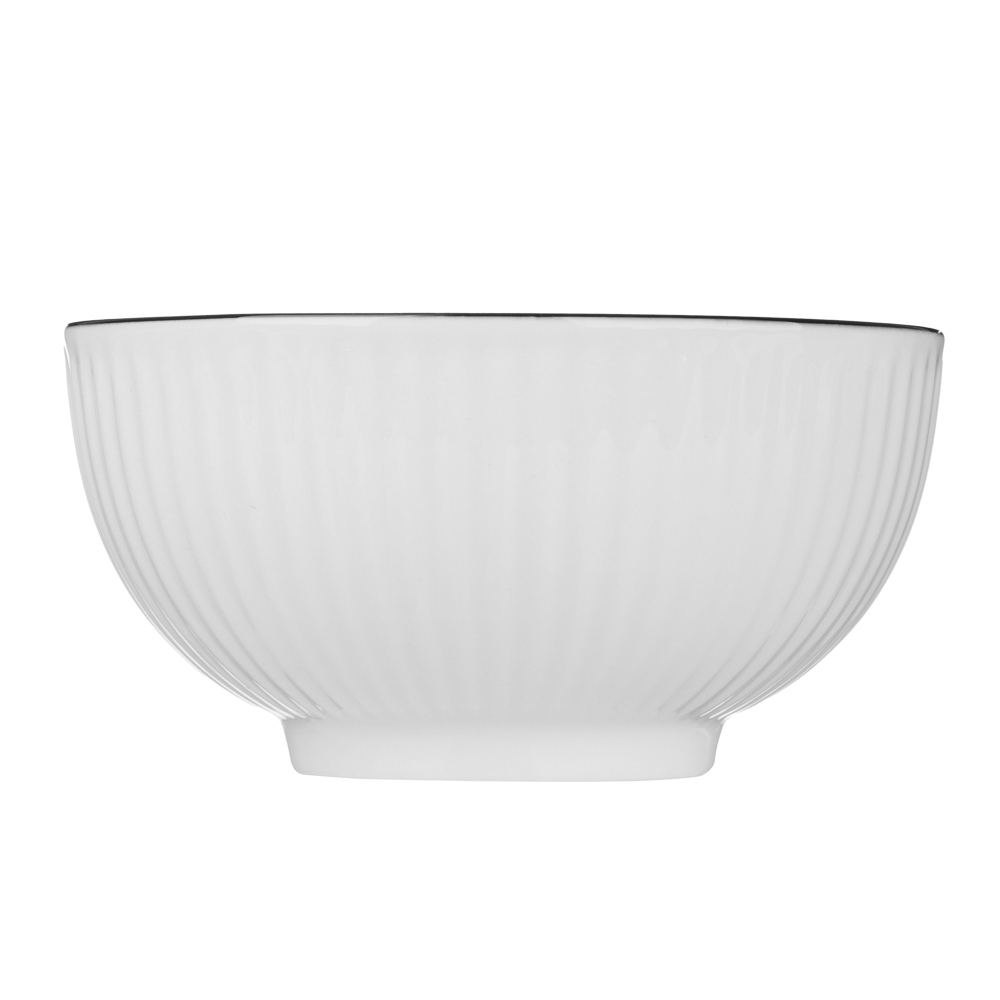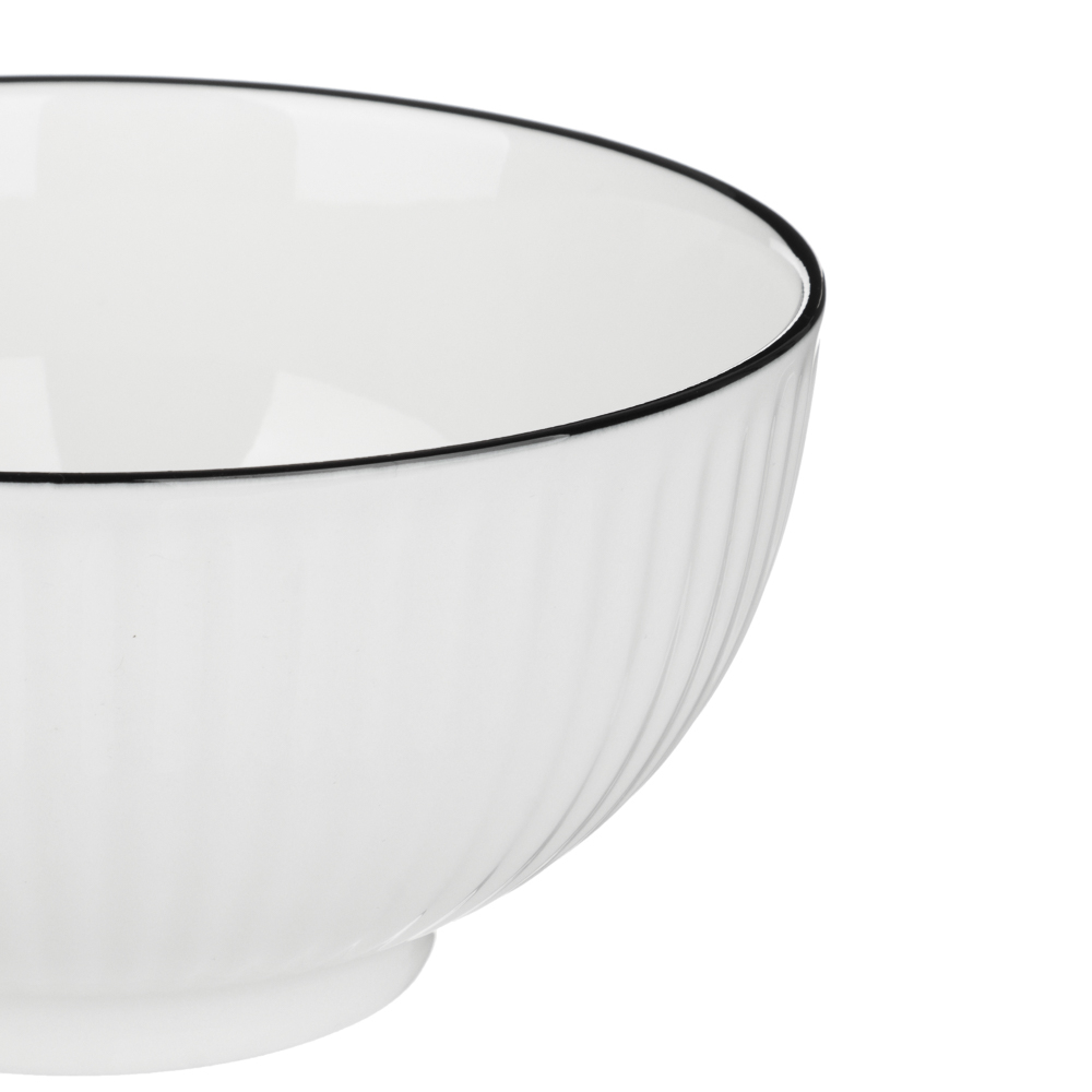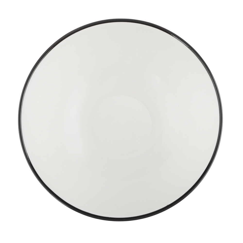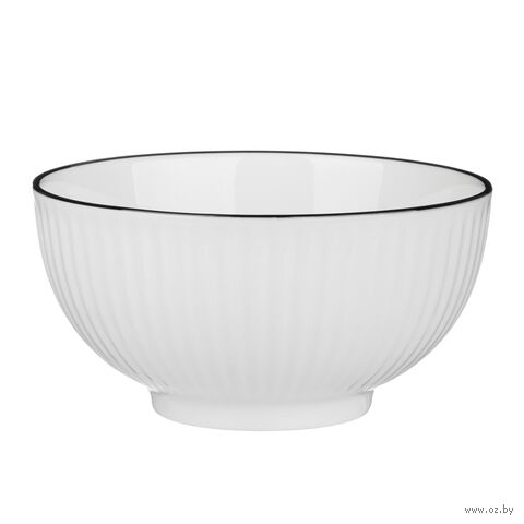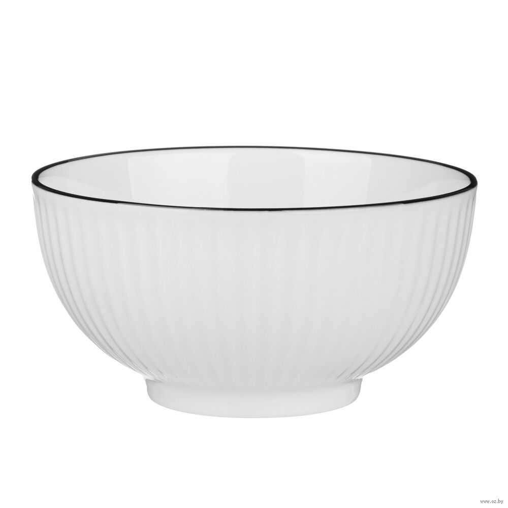 Салатник "Соло" – элегантная посуда, выполненная из качественного белого фарфора с контрастной чёрной отводкой и рельефным узором.