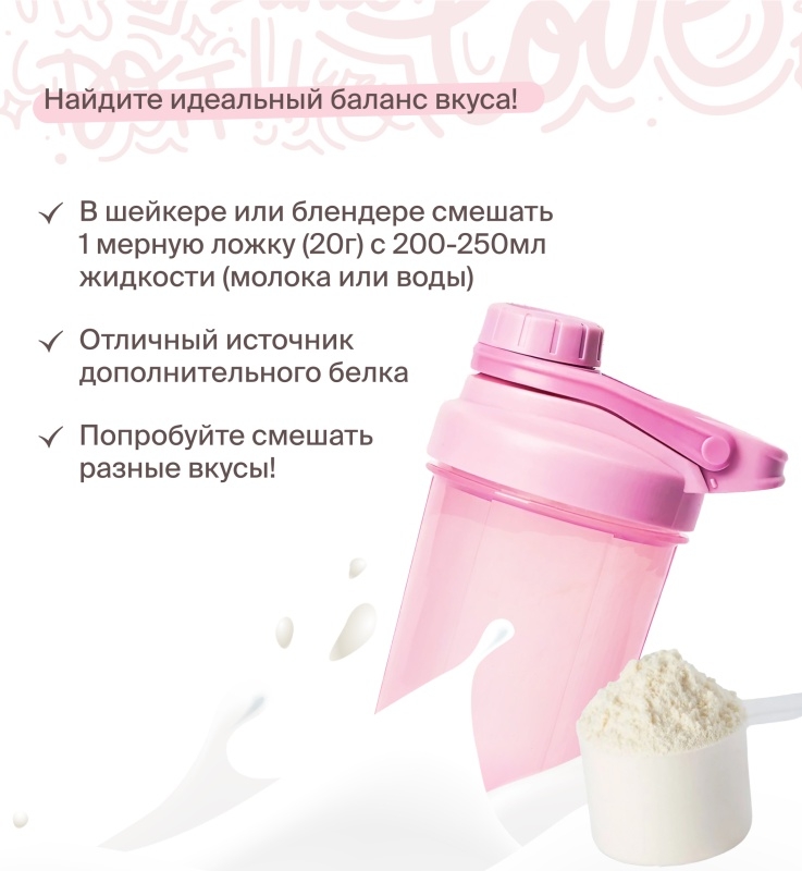 Смешать в блендере или шейкере 1 порцию продукта с 200-250 мл нежирного молока или воды.Состав, пищевая ценность