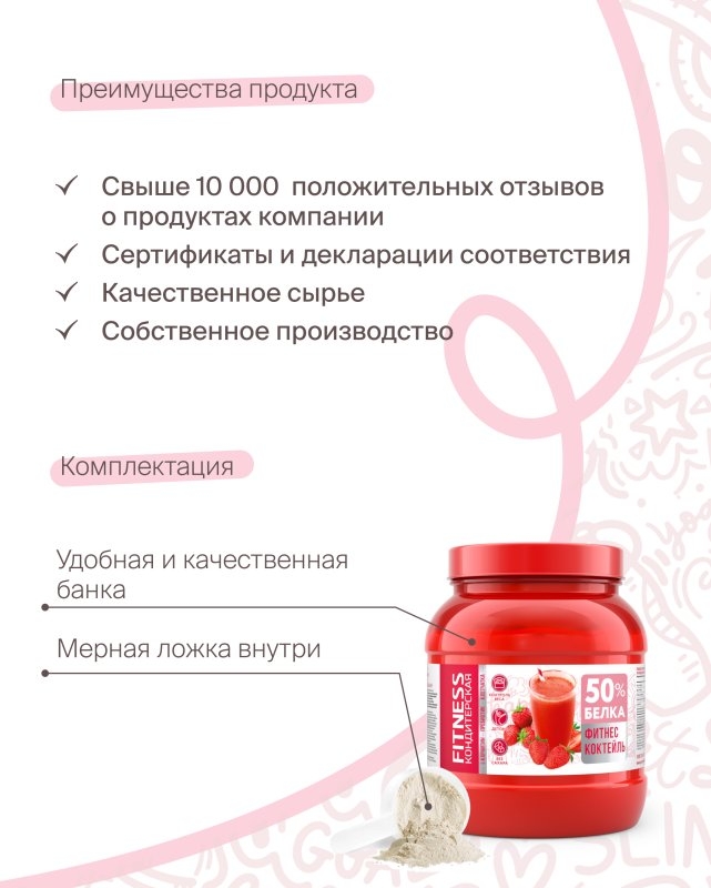 Фитнес-коктейль – это дополнительный источник белка для оптимизации вашего питания, а также удобный и эффективный способ снизить калорийность дневного рациона, не испытывая при этом чувства голода.
