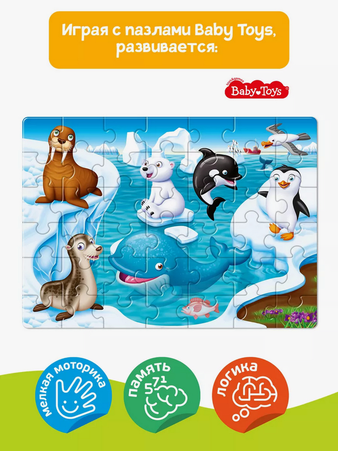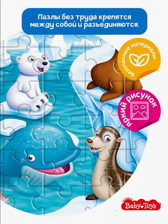 Пазл – это самый простой и полезный способ занять ребенка. Время, потраченное на сборку картинки, будет максимально эффективным: ведь пазлы Baby Toys – это яркая красочная печать, высококачественные материалы и интересные идеи.
