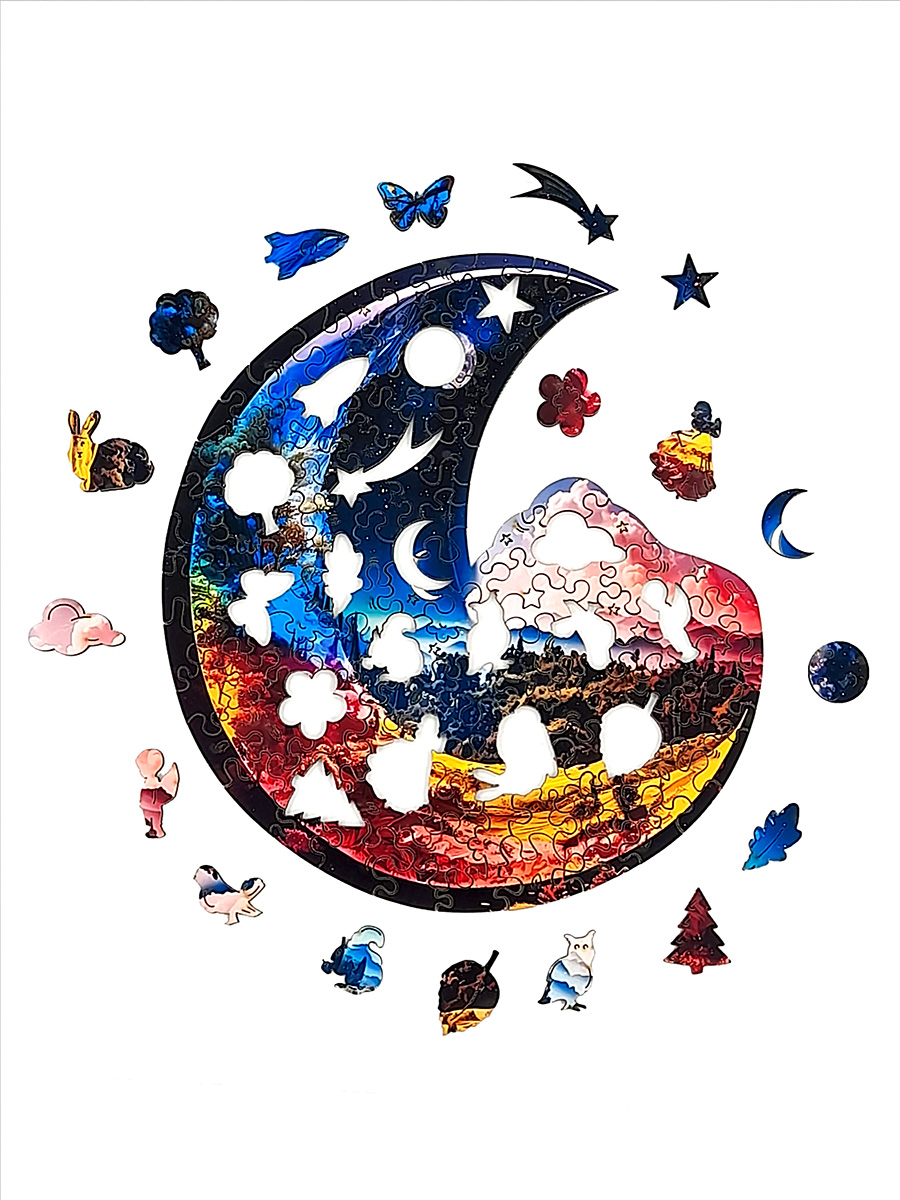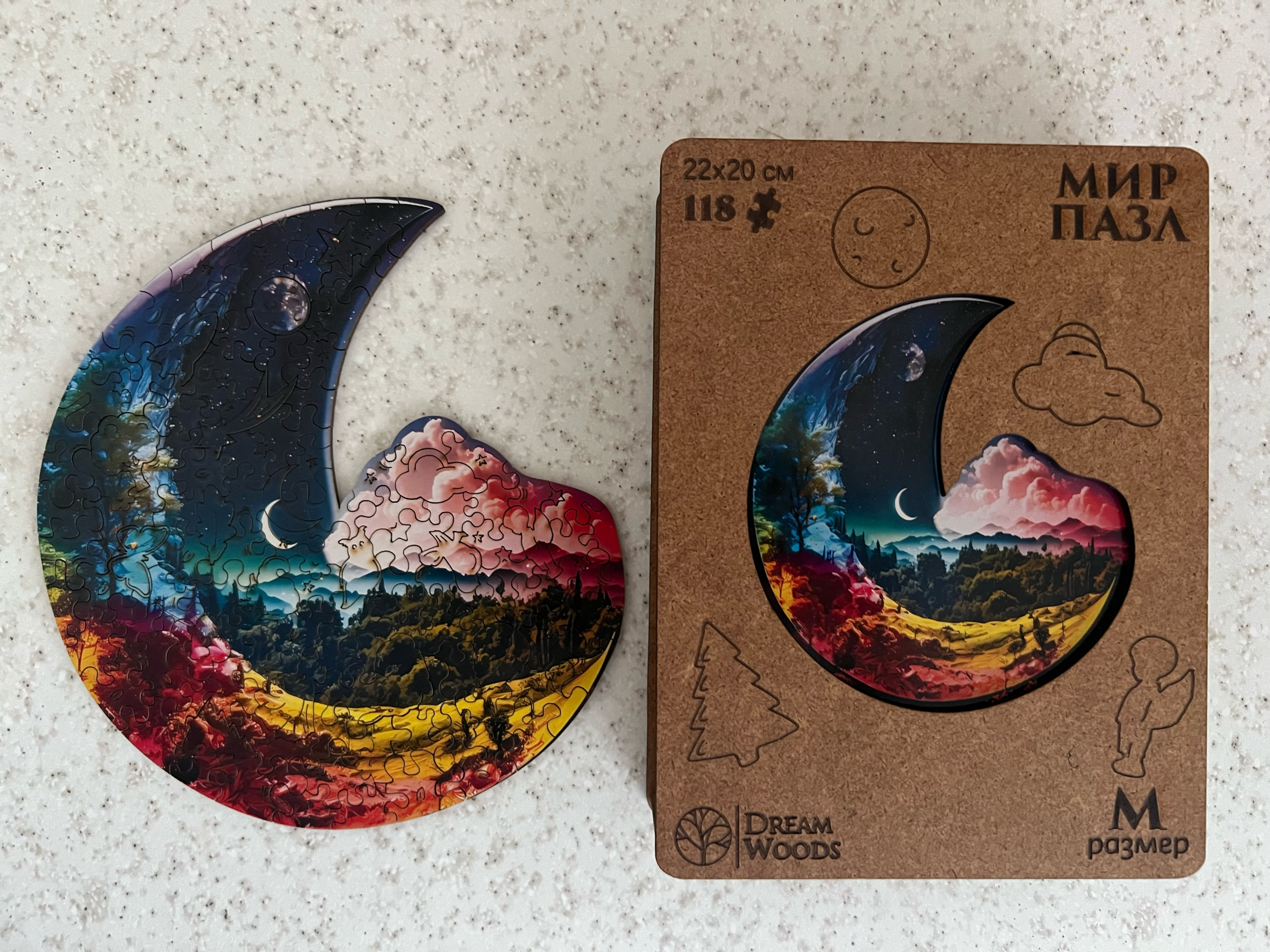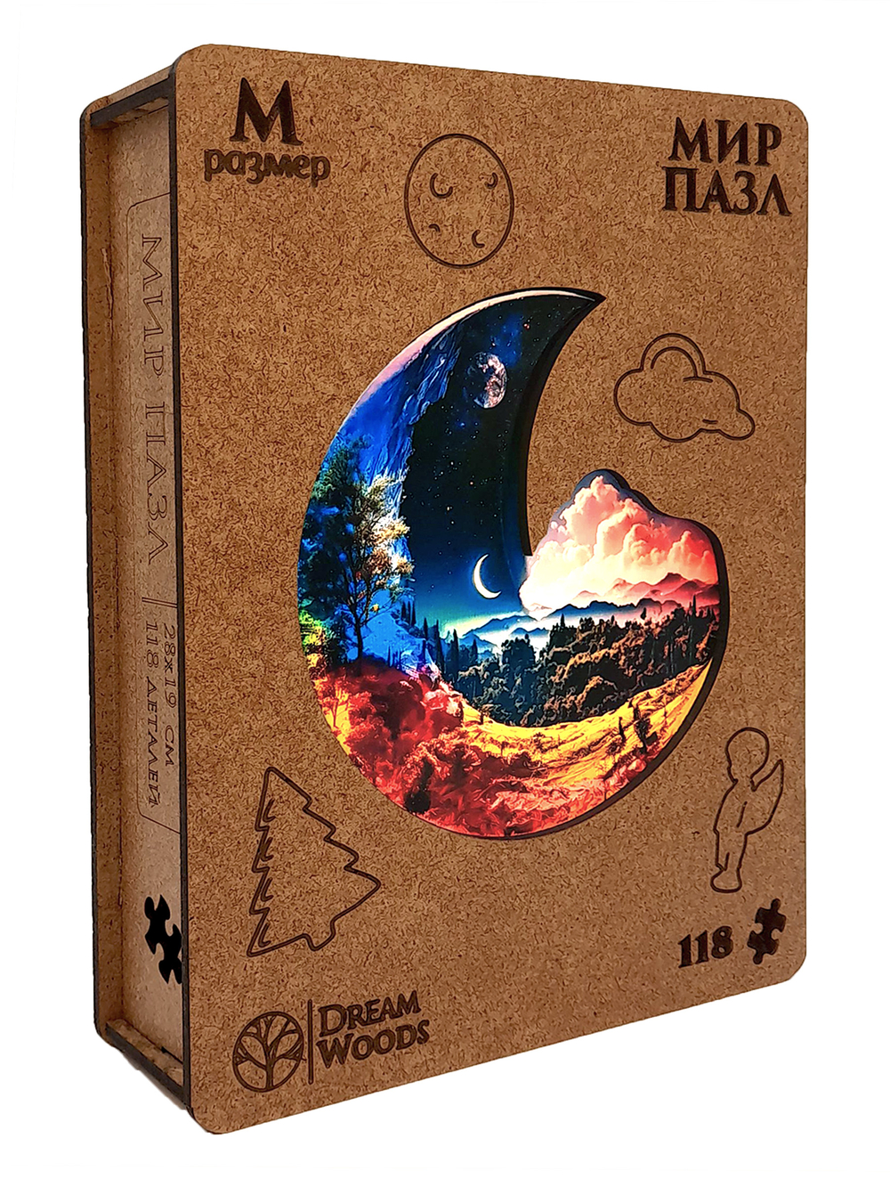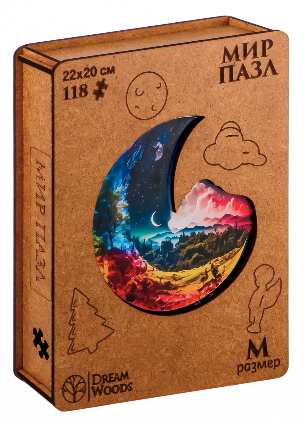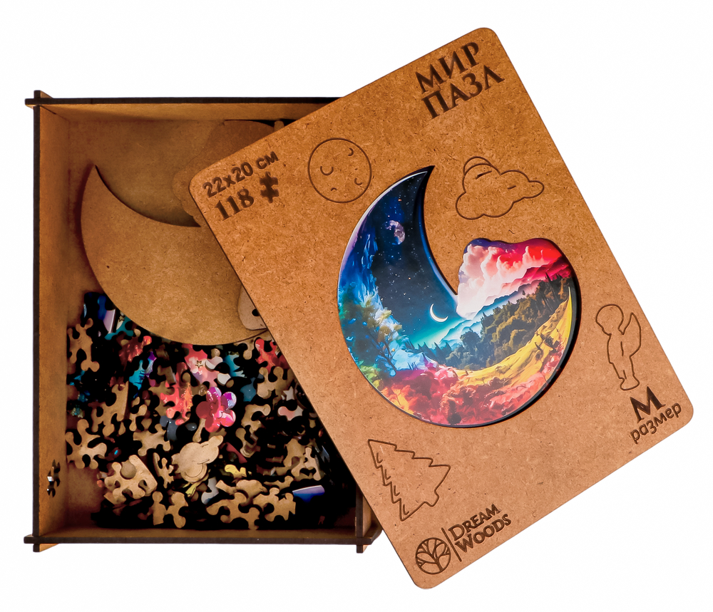 Фигурный пазл Dream Woods – пазл из дерева, который состоит из фигурных деталей в виде животных, птиц и растений и других фигур.