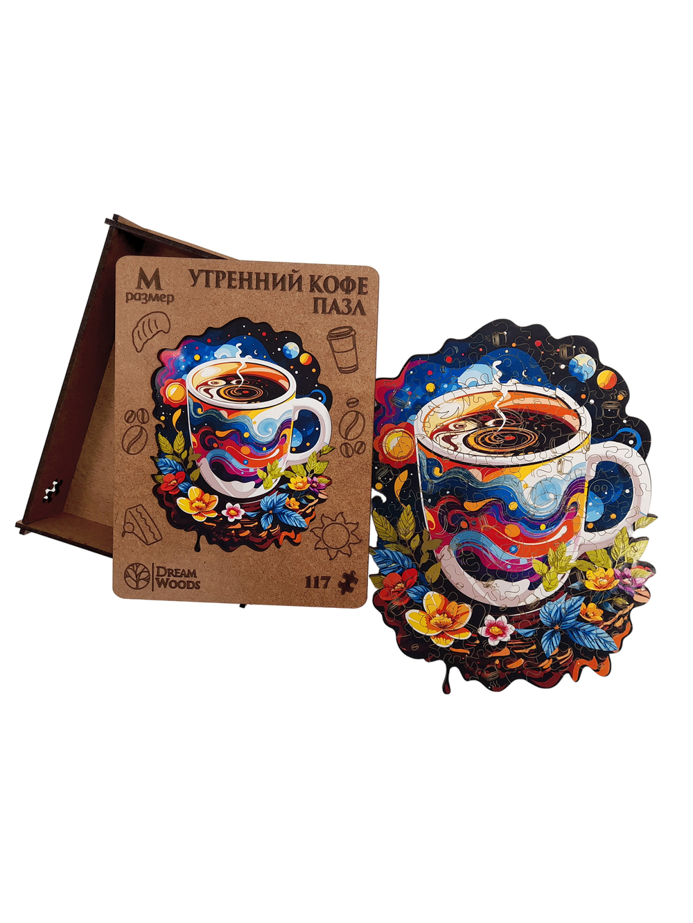 Фигурный пазл Dream Woods – пазл из дерева, который состоит из фигурных деталей в виде животных, птиц и растений и других фигур.