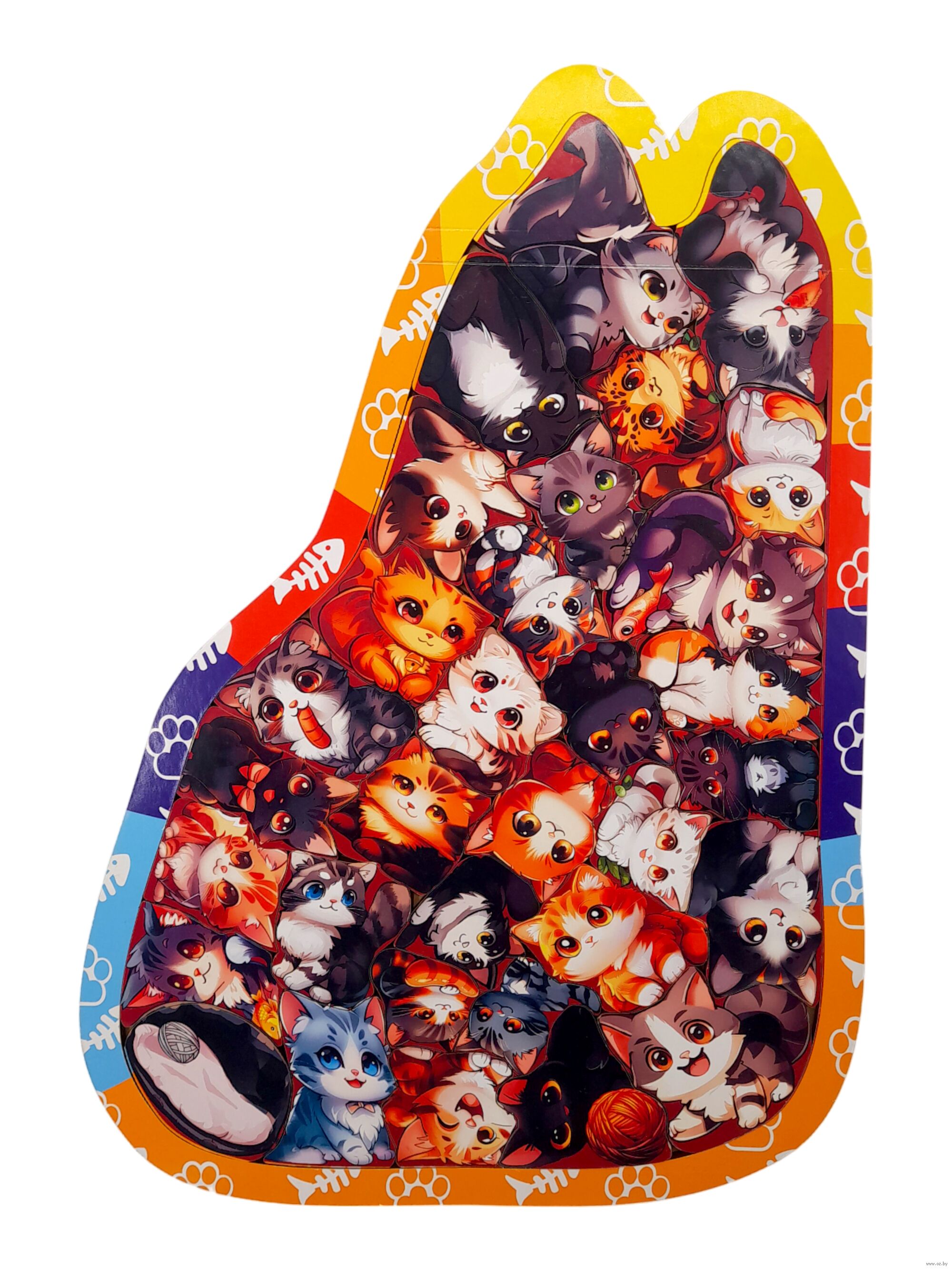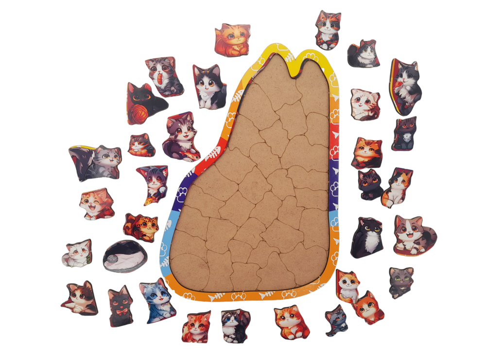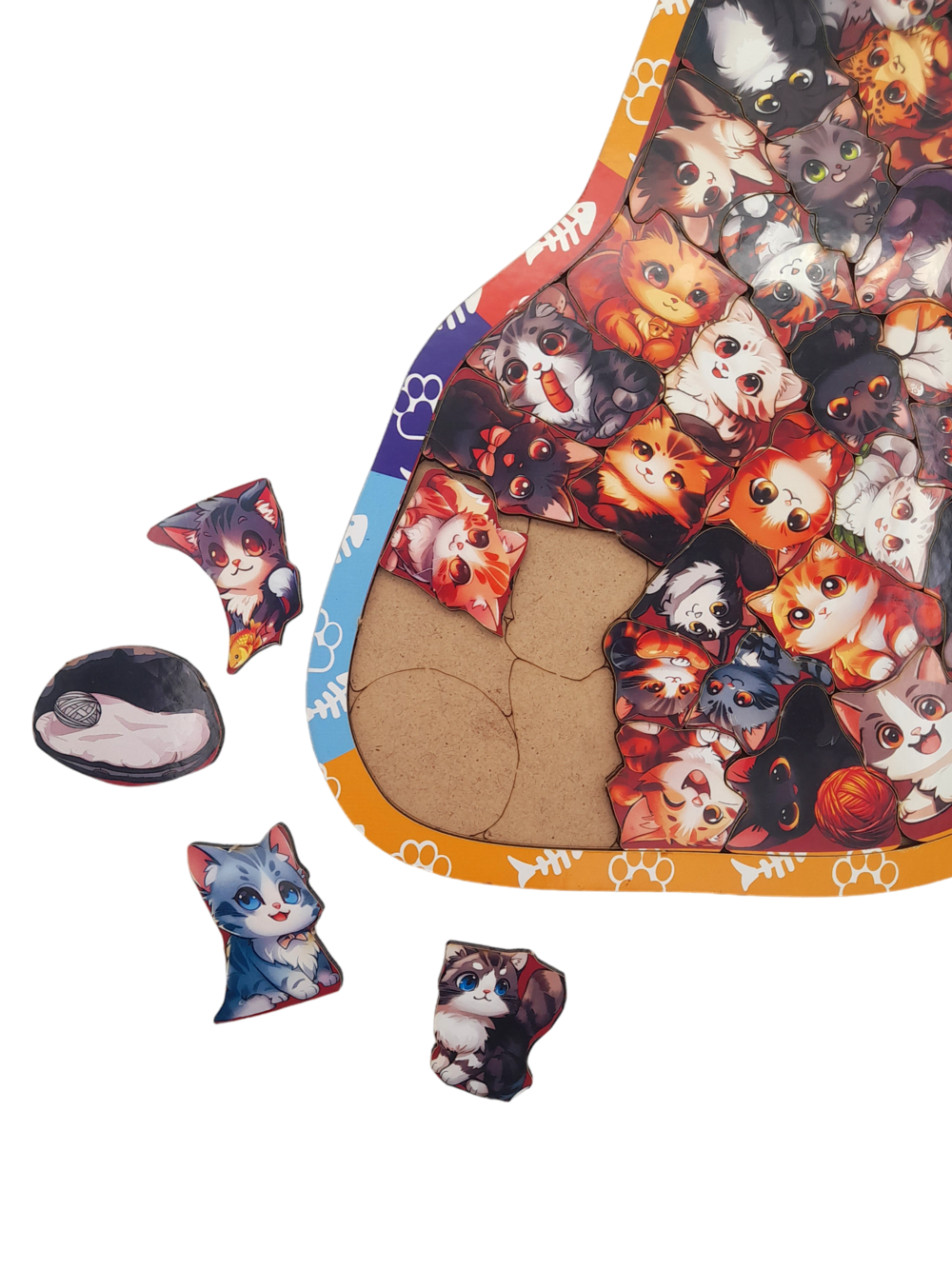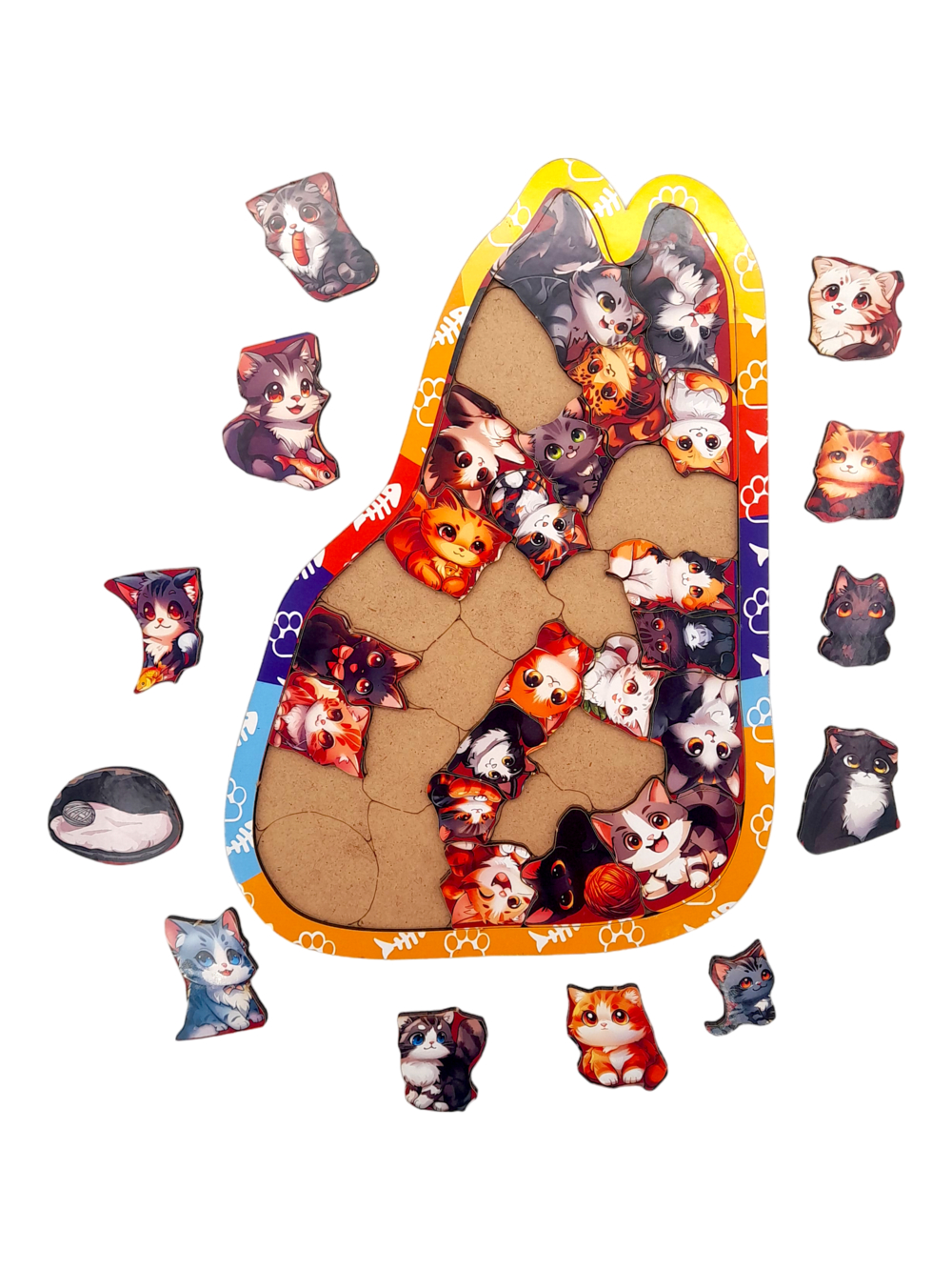 Это фигурный деревянный пазл, выполненный в формате сортера. Это значит, что у него уже есть рамка и подложка, что облегчит процесс сборки укрупнённых деталей.