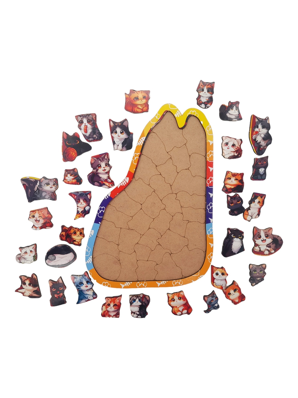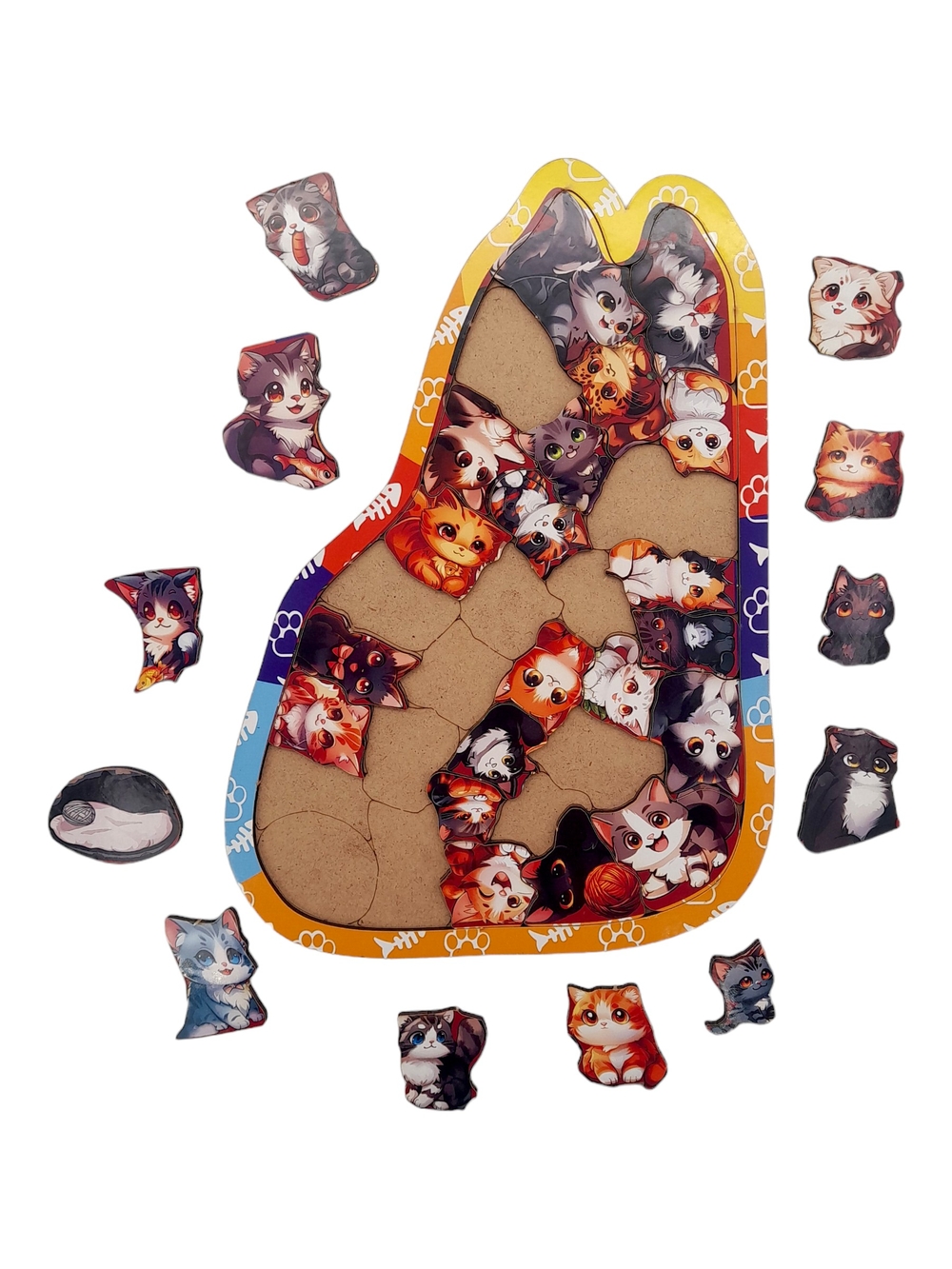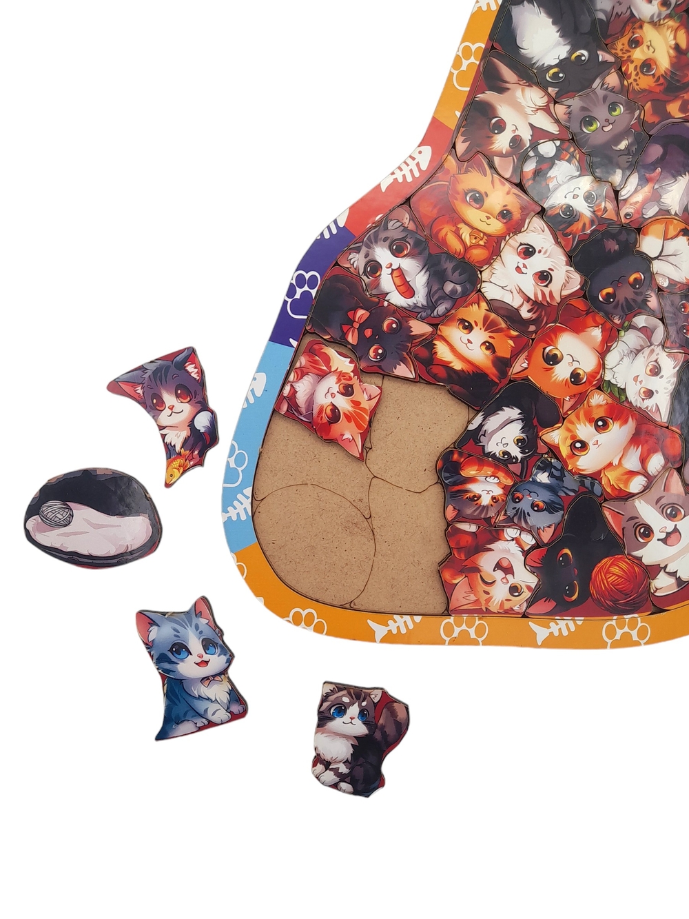 Это фигурный деревянный пазл, выполненный в формате сортера. Это значит, что у него уже есть рамка и подложка, что облегчит процесс сборки укрупнённых деталей.