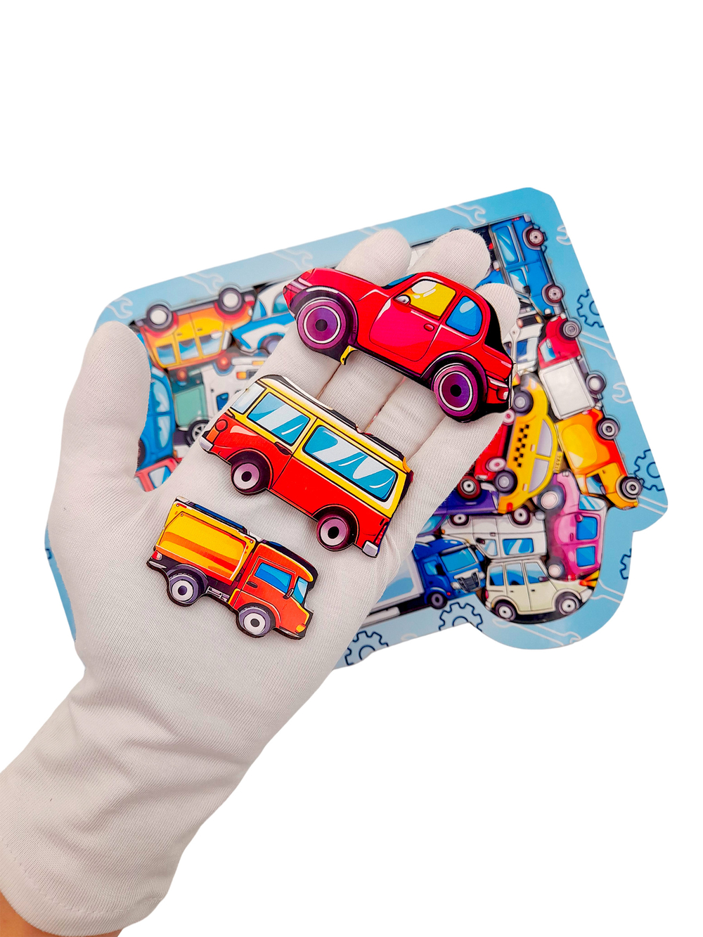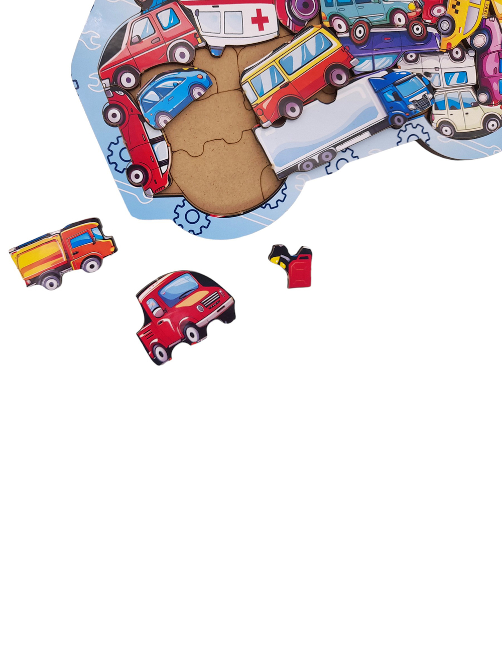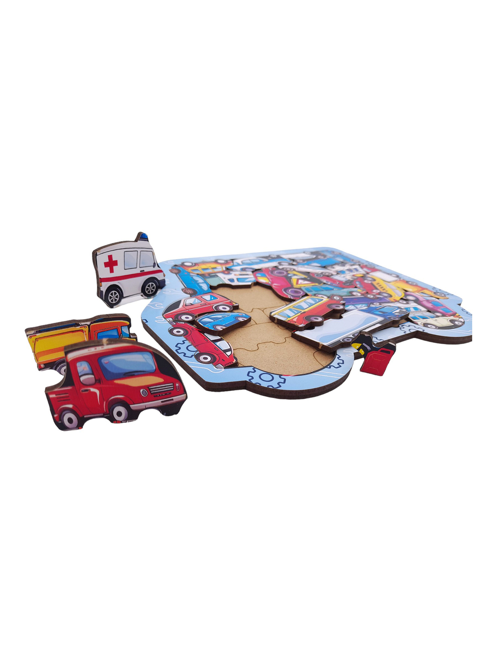 Это фигурный деревянный пазл, выполненный в формате сортера. Это значит, что у него уже есть рамка и подложка, что облегчит процесс сборки укрупнённых деталей.