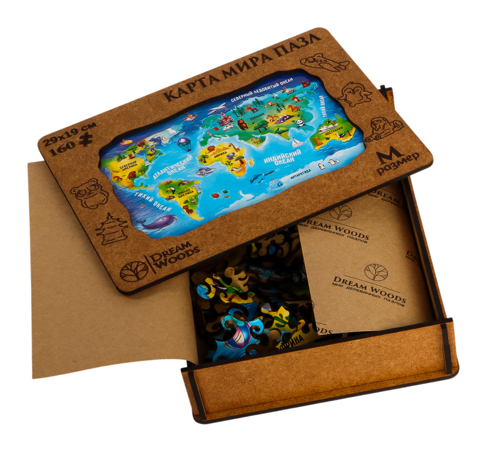 Карта Мира – нестандартный пазл: он состоит из элементов не единой, а разнообразной формы. Подбор деталей в виде мини-фигурок требует от владельца головоломки внимания, хорошей зрительной памяти, творческого мышления.