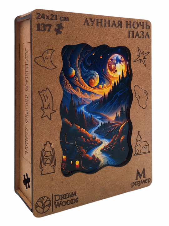 Фигурный пазл Dream Woods – пазл из дерева, который состоит из фигурных деталей в виде животных, птиц и растений и других фигур.