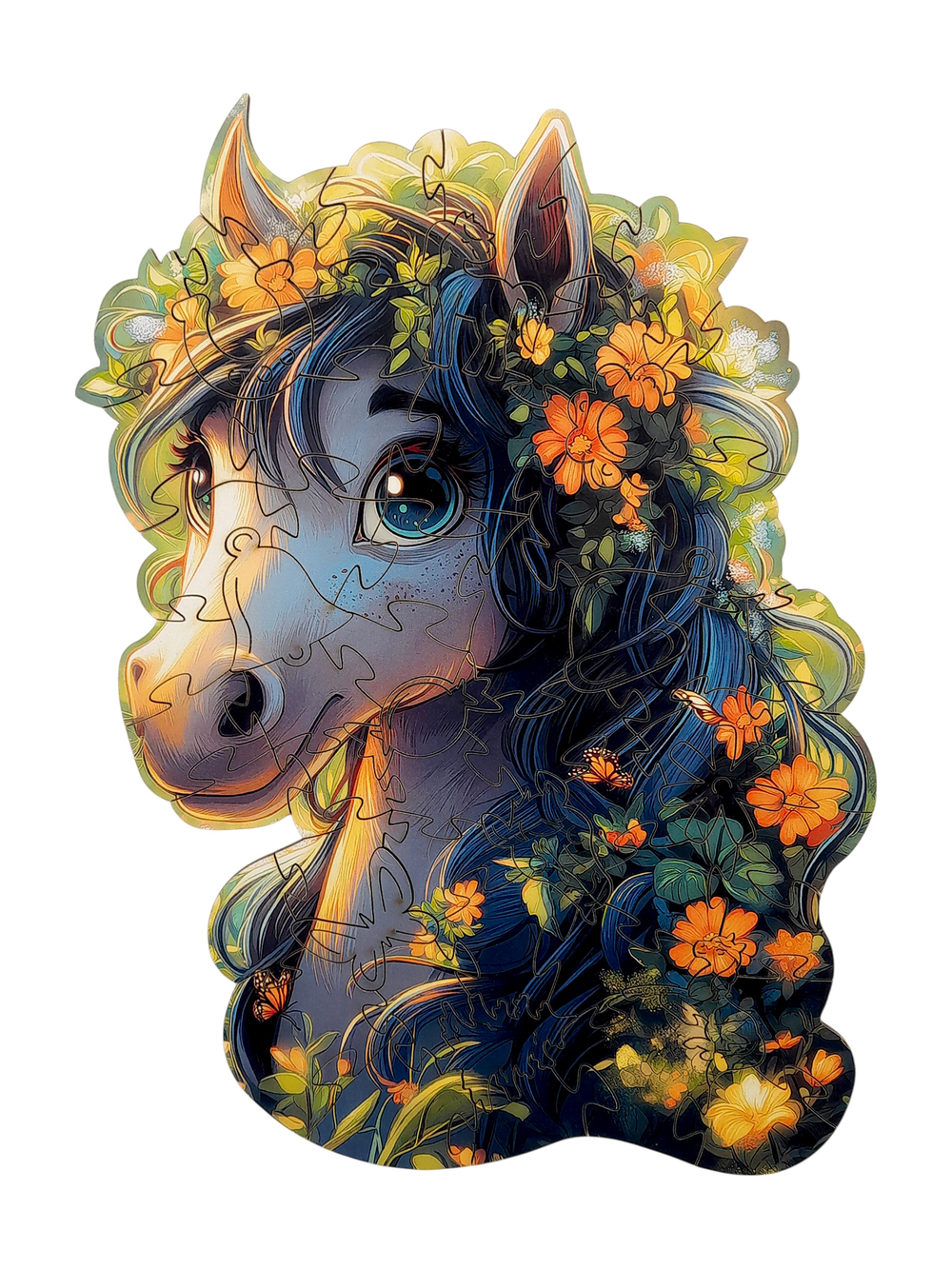 Лошадка – нестандартный пазл: он состоит из элементов не единой, а разнообразной формы.