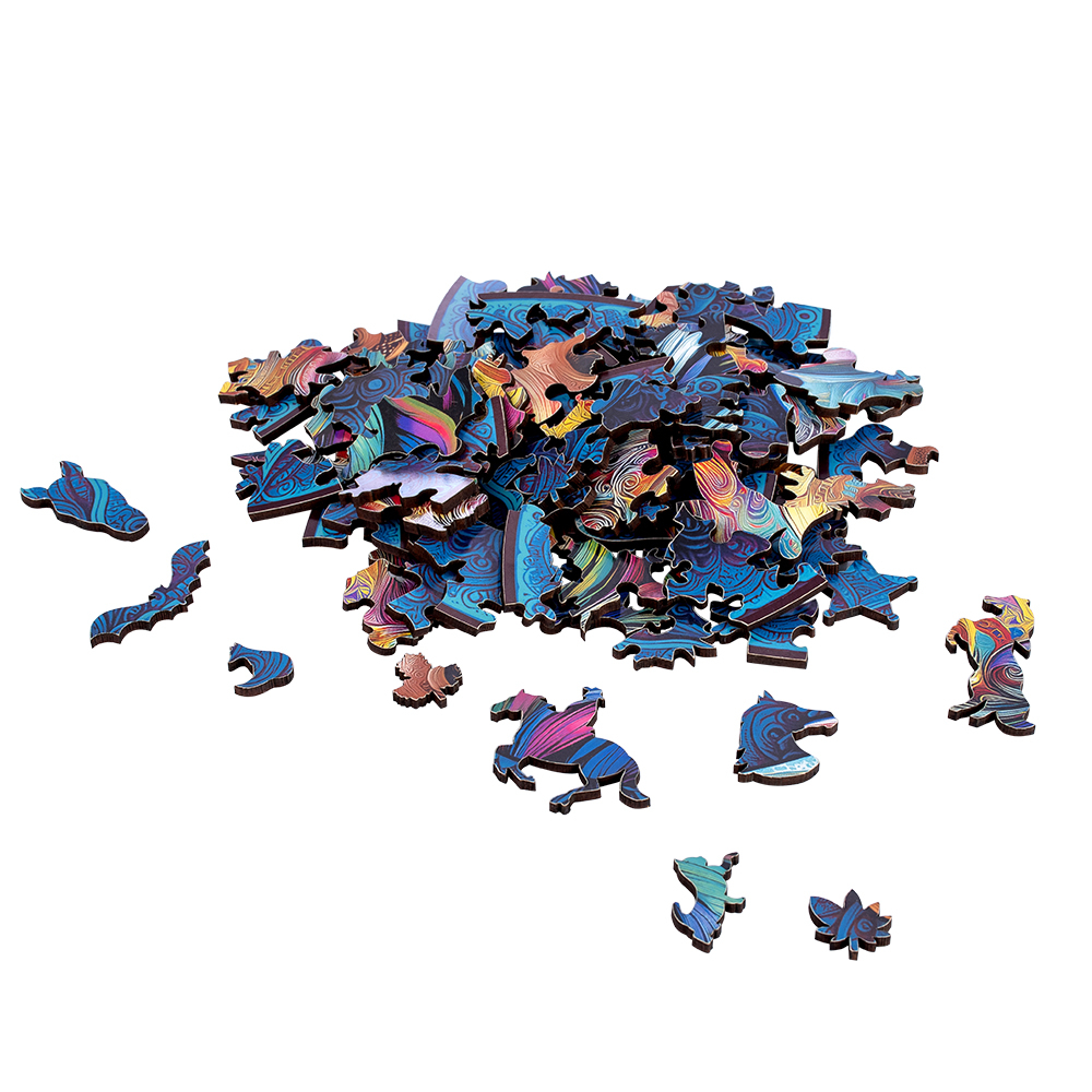 Среди деталей можно встретить различных животных. Их интересно рассматривать и приятно держать в руках. Дарите пазл в качестве развивающей игрушки детям или медитативного анти-стресса взрослым: их сборка тренирует фантазию, моторику, пространственное мышление и станет увлекательным досугом для всей семьи.