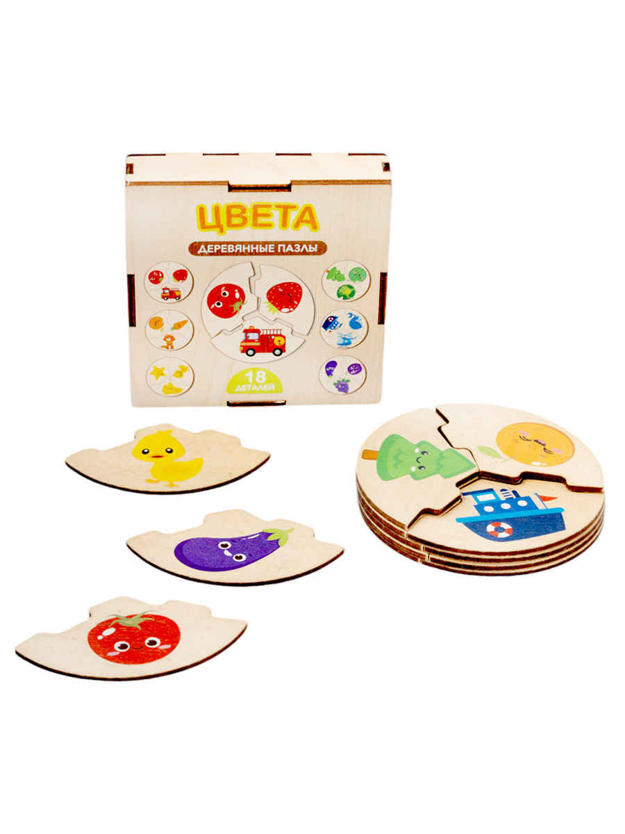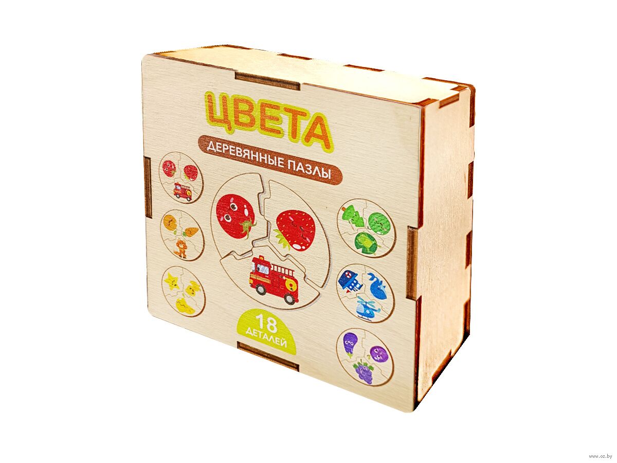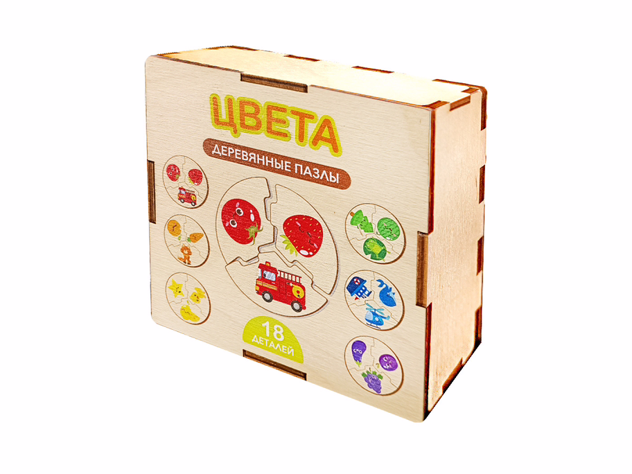 Деревянный пазл для детей "Цвета" – интересная развивающая игра с элементами из древесного материала (экологичной березовой фанеры). Края элементов закруглены и тщательно обработаны.
