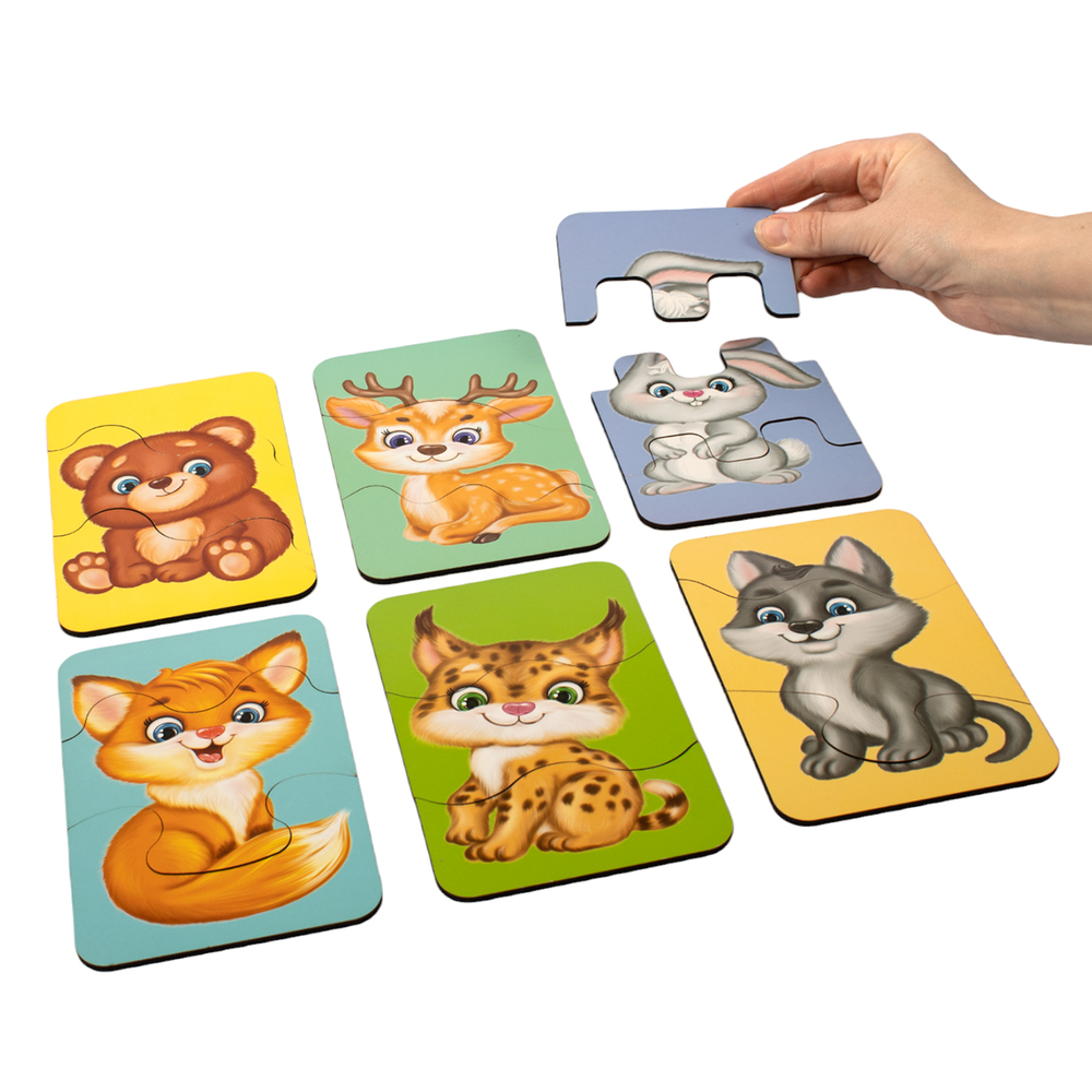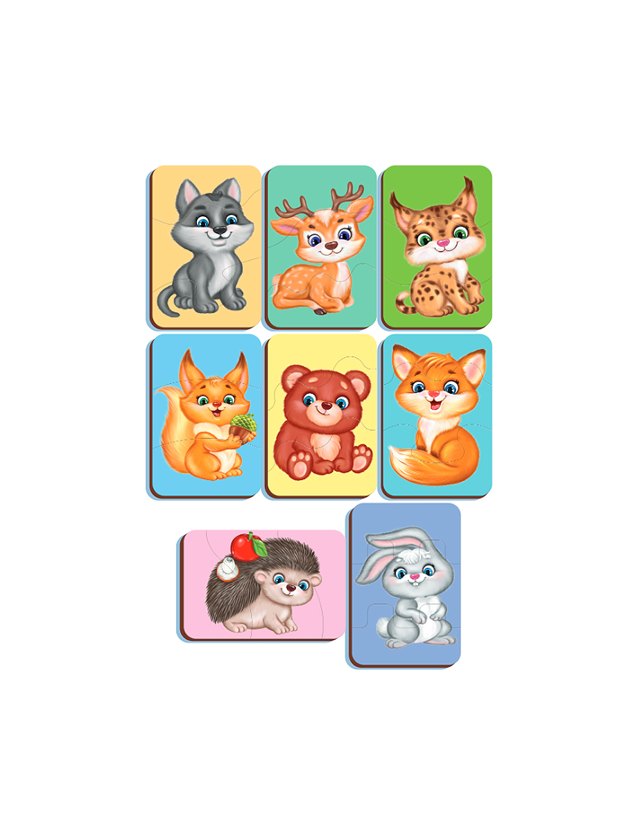 Парные пазлы "Лесные жители" – это классические пазлы, состоящие из 3 частей. Пазлы выполнены из высококачественного древесного материала. Соединяя части изображения, ребёнок составляет яркую картинку с изображением лесных жителей.