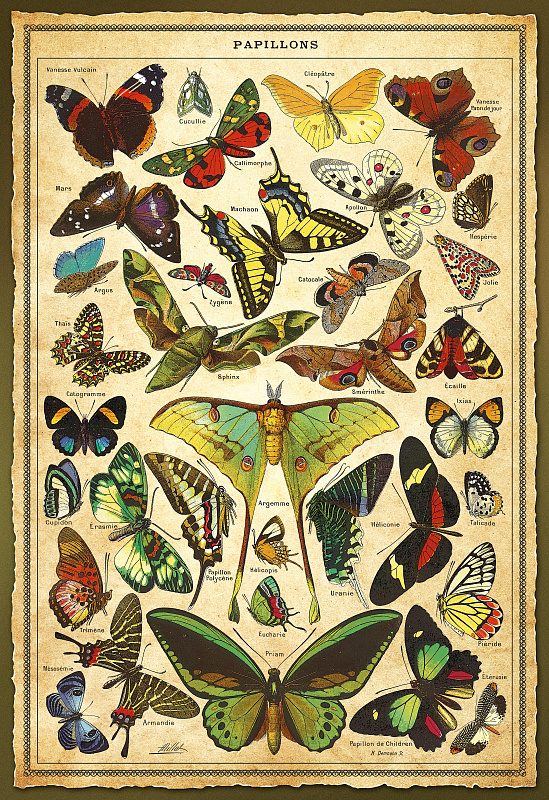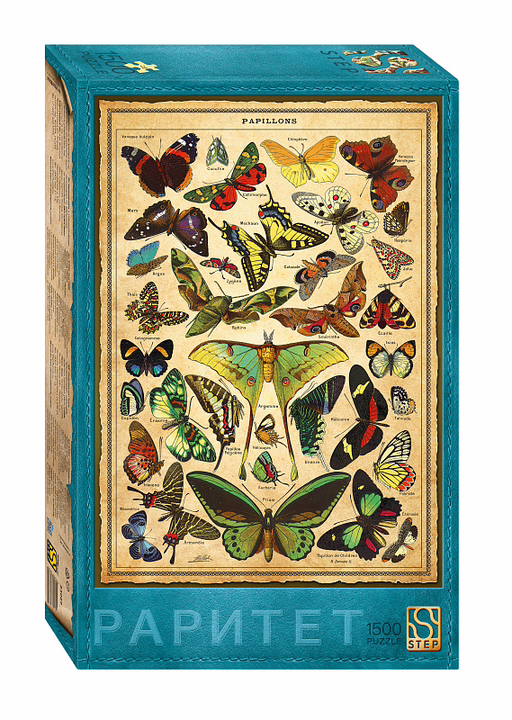 Пазл "Плакат Бабочки" на 1500 деталей – это настоящее произведение искусства, воплощённое в формате настольного хобби. На собранном изображении размером 850х580 мм – коллекция изящных бабочек, выполненная в стиле старинного натуралистического постера. Каждое насекомое прорисовано с вниманием к мельчайшим деталям: от тонких прожилок на крыльях до нюансов цвета и формы. На фоне винтажной бумаги латинские подписи добавляют изображению научного шарма и утончённости.