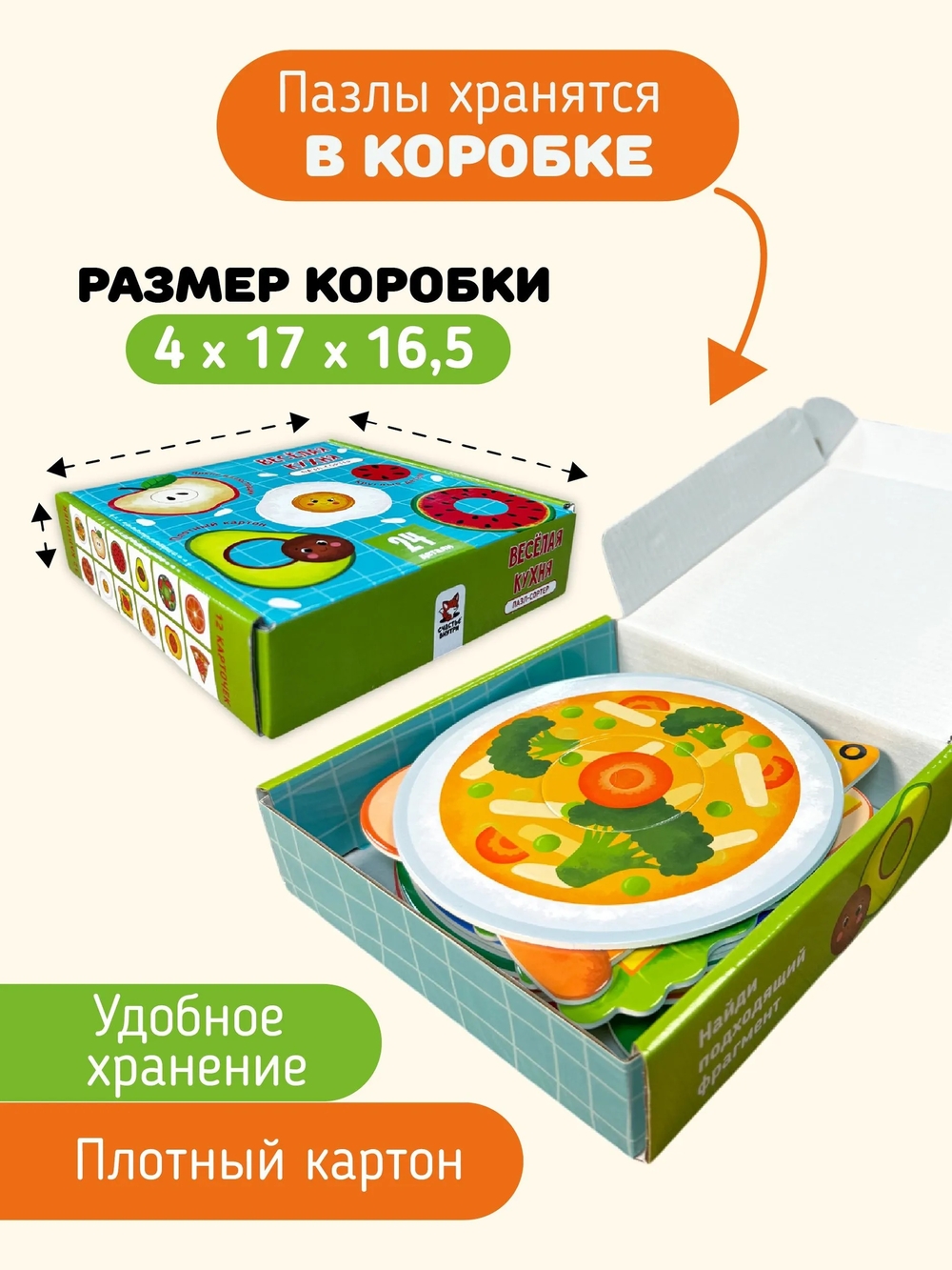 Безопасность и долговечность: большие детали легко держать маленьким ручкам, а плотный картон гарантирует, что игрушка прослужит долго и выдержит все игры!