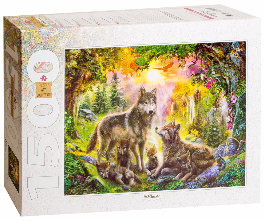 Пазл "Волки" состоит из 1500 элементов и собирается в изображение гордых и величественных волков, на фоне яркого пейзажа. Примечательно, что пазл входит в серию "Art Collection", а значит, изображение на нем – это не фотография, а живописная картина.
