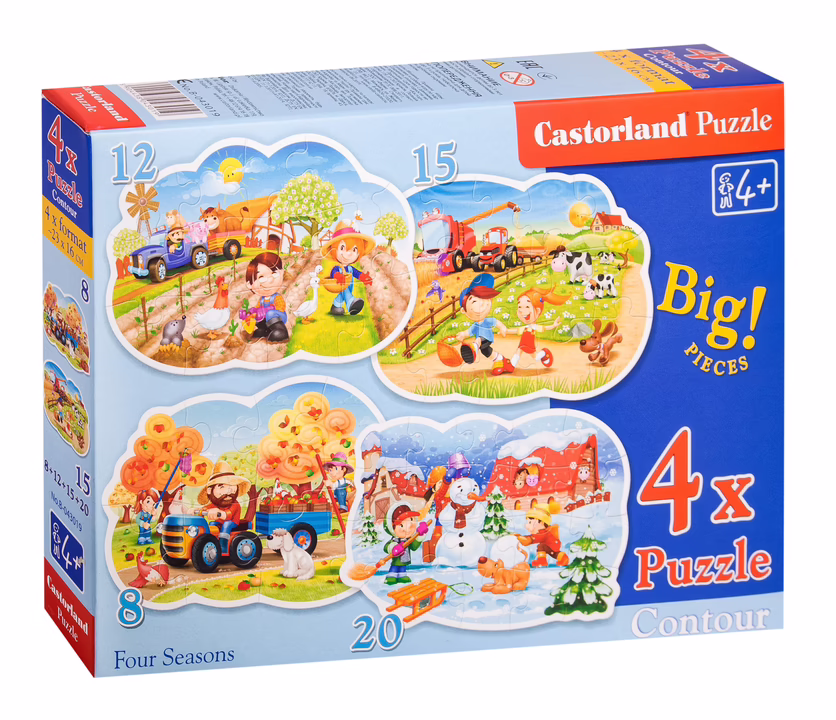Оригинальный пазл "Четыре сезона" наверняка сможет собрать даже маленький ребенок, ведь его детали яркие, красочные и большого размера! Однако, не все так просто. Из набора элементов пазла получатся сразу четыре разные картинки. Ребенок должен правильно определить, какие элементы относятся именно к каждой картинке.