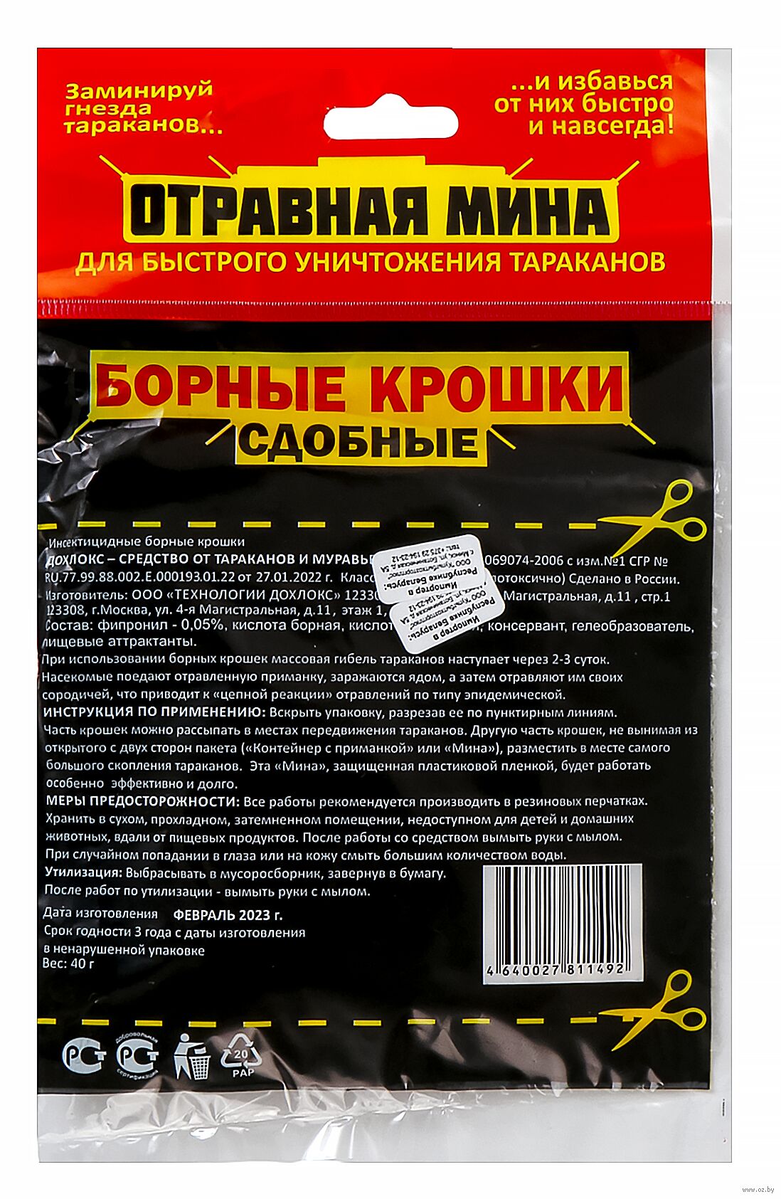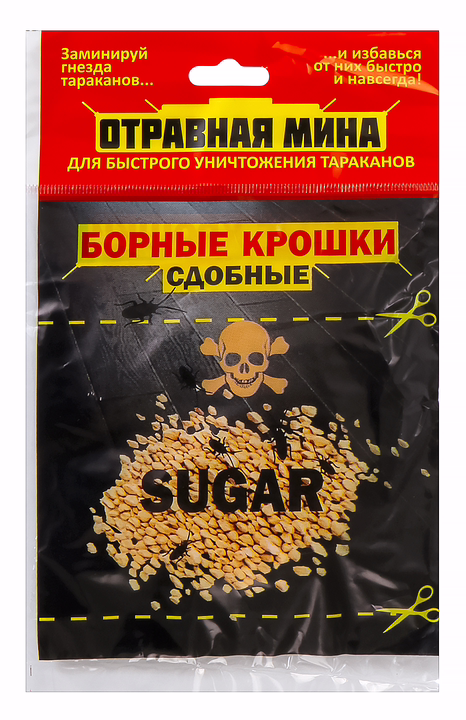 Борные крошки являются средством борьбы с тараканами. При их использовании гибель тараканов наступает через 2-3 суток.