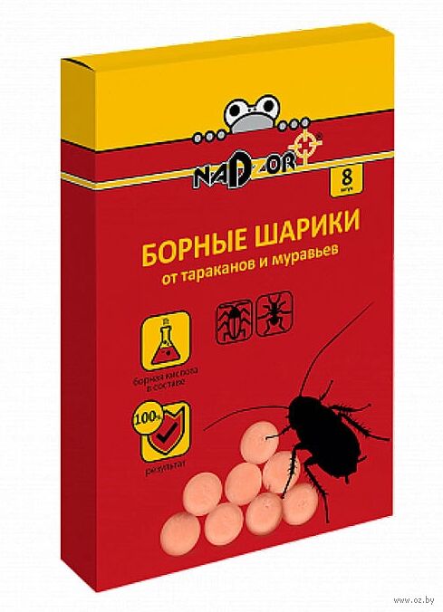 Готовое решение для борьбы с тараканами и муравьями в виде компактных шариков, содержащих борную кислоту.
