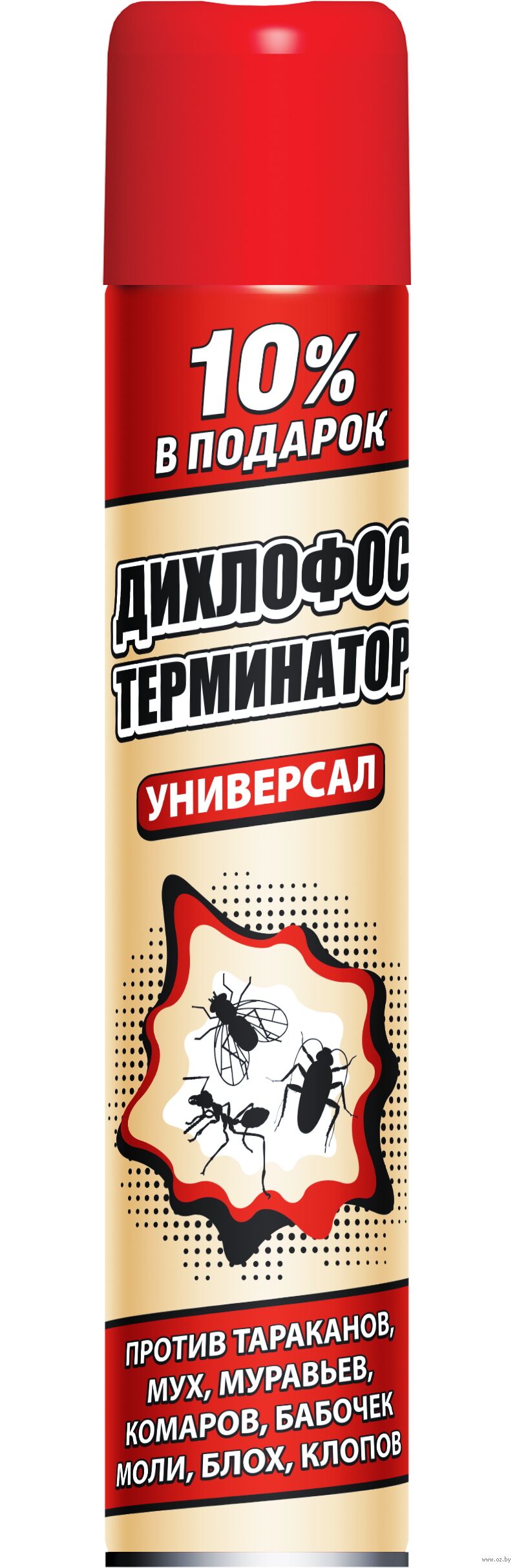 Дихлофос "Терминатор" эффективен против бытовых насекомых. Три яда в его составе препятствуют привыканию к действующему веществу и эффективно работают. Дихлофос не оставляет следов на поверхностях. После его применения достаточно сделать влажную уборку, смахнув остатки.