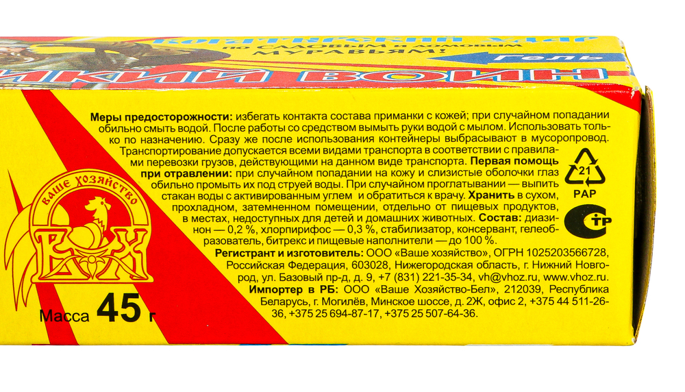 Специальный состав препарата так привлекателен для муравьев, что рабочие особи не только охотно поедают ее сами, но приносят в муравейник и кормят личинок. Благодаря этому уже через несколько дней погибает вся муравьиная колония.
