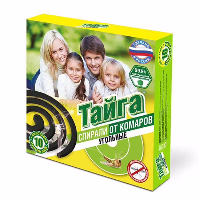 Угольные спирали от комаров "Тайга" предназначены для уничтожения летающих насекомых (комары, мошки, мокрецы, москиты).
