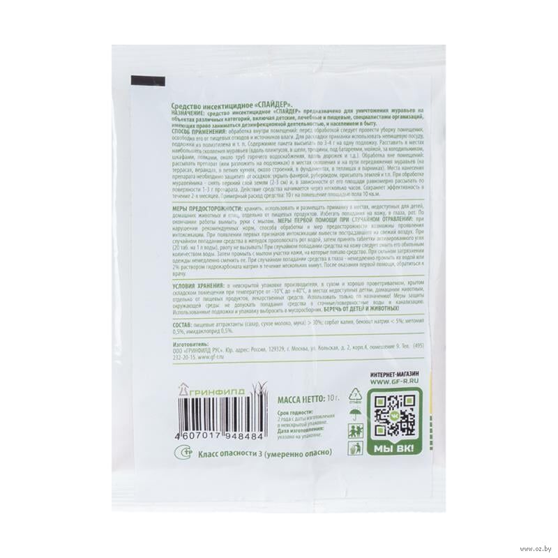 Гранулы от муравьёв "Спайдер" предназначены для уничтожения садовых и домашних муравьёв. Можно использовать в помещениях.