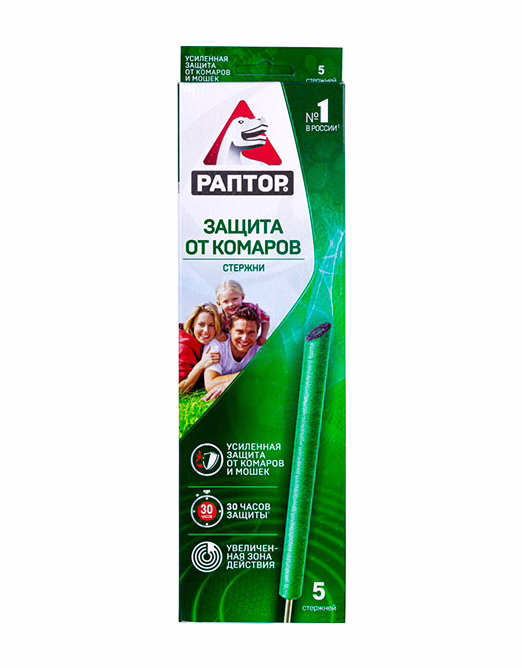 Стержень "Раптор" обеспечивает эффективную защиту от укусов комаров, мошек, мокрецов и москитов на открытом воздухе – в лесу, саду, приусадебном участке, открытой террасе или веранде.