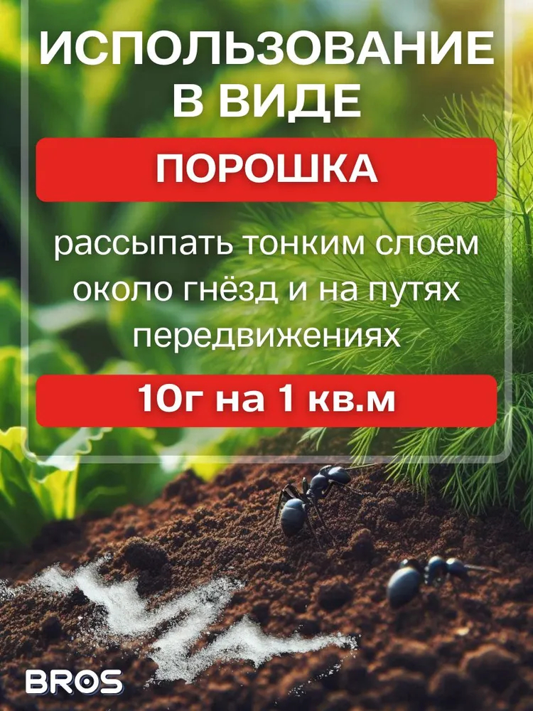 Высокоэффективное средство, предназначенное для борьбы с муравьями снаружи и внутри помещений, на террасах, в беседках, на тропинках. Универсальный способ применения препарата: в виде порошка для посыпания или после растворения в воде для полива.