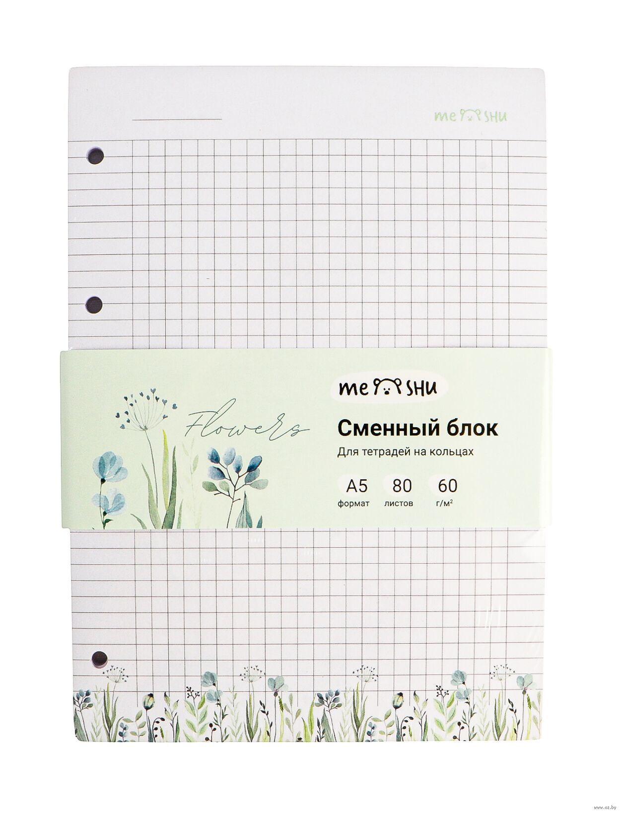 Сменный блок для тетрадей с кольцевыми механизмами. Формат А5, 80 листов. Офсетная бумага плотность 65 г/м² в клетку, с дизайнерским блоком.