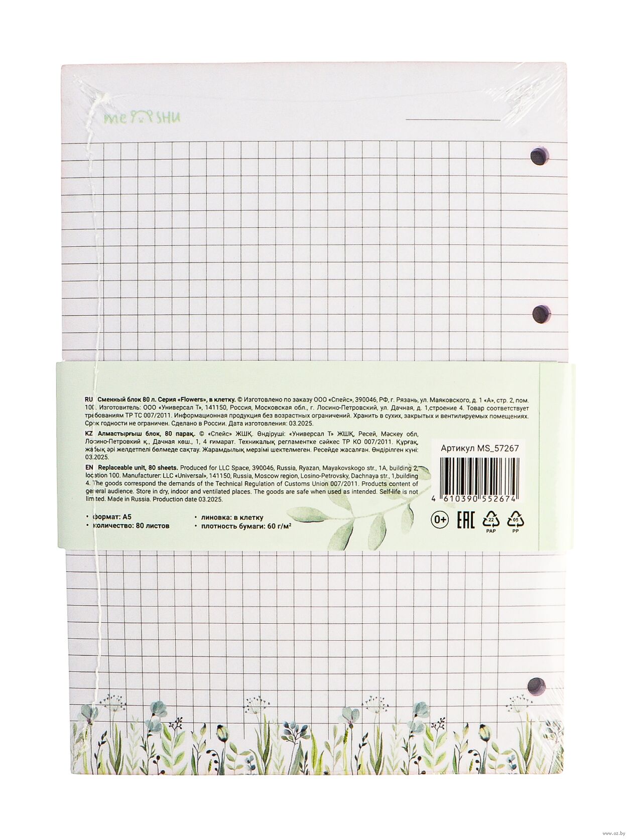 Сменный блок в клетку "Flowers" (А5; 80 листов; белый)