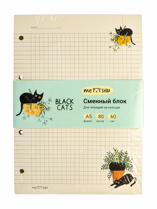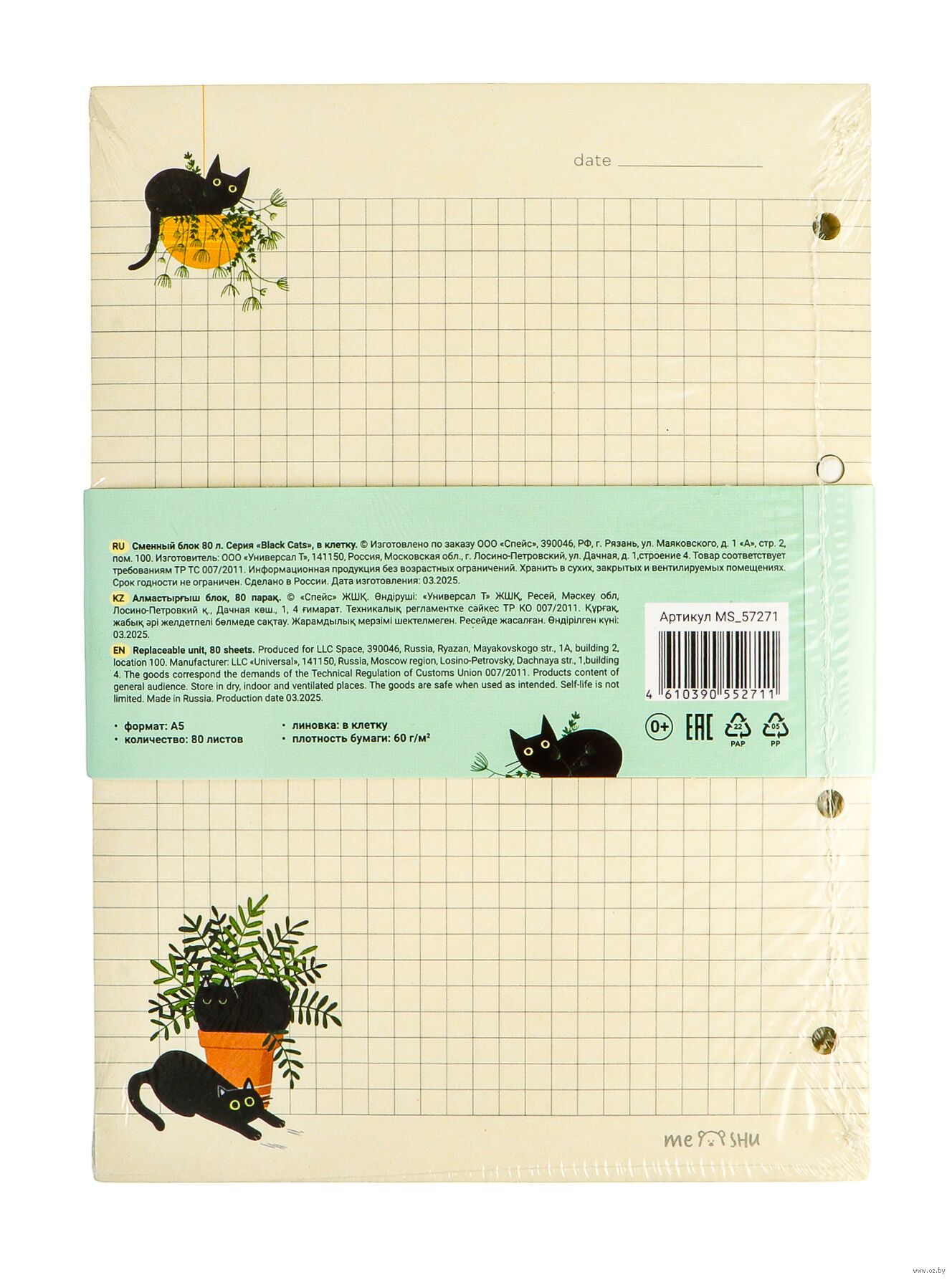 Сменный блок в клетку "Black Cats" (А5; 80 листов; бежевый)