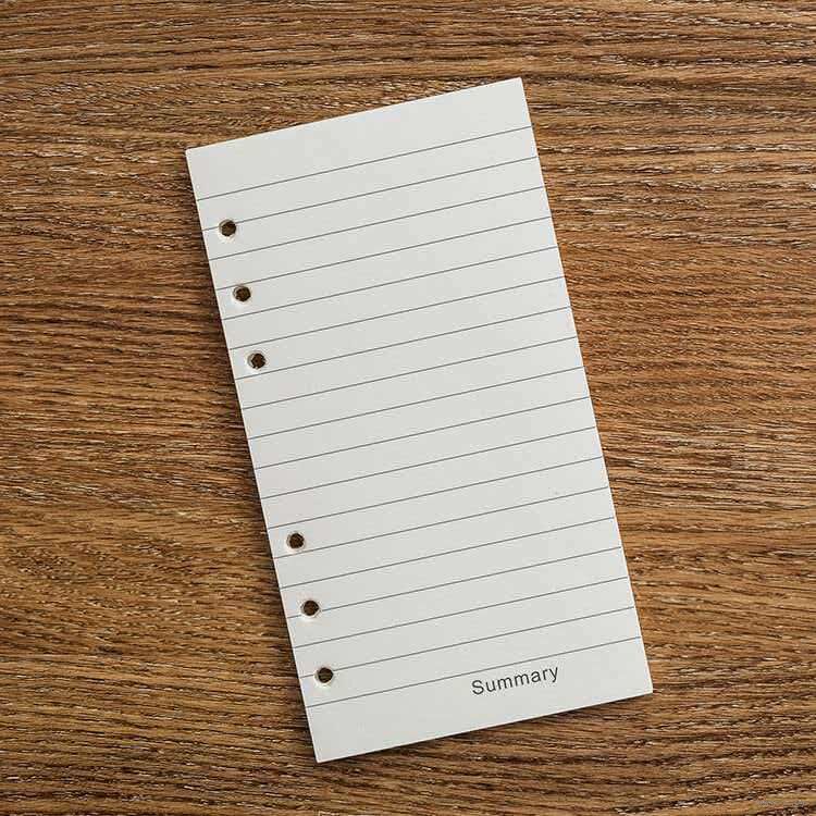 Подходит для всех тетрадей на кольцах формата А6. Внутренний блок содержит 80 листов белой офсетной бумаги.