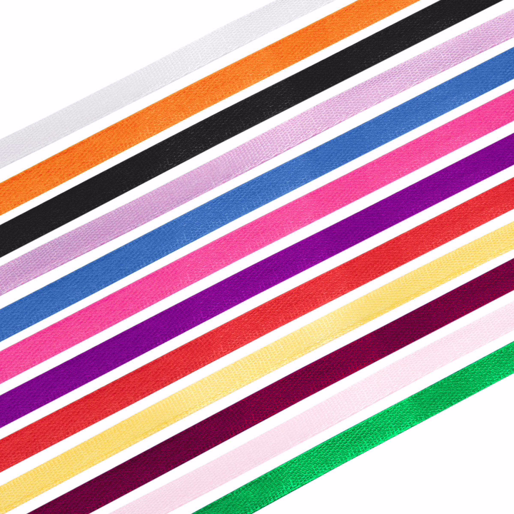 Набор атласных лент – это подборка декоративных лент из атласной ткани различных цветов, полностью изготовленных из полиэстера, с обработанными краями по обеим сторонам. Для обработки кромок применяется полиэстеровая нить. Ленты обладают гладкой текстурой, однотонные, без каких-либо рисунков.