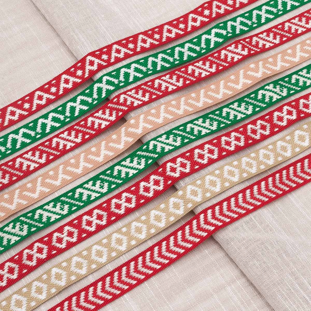 Набор лент жаккардовых – настоящее произведение текстильного искусства, которое сочетает в себе традиции и символику славянской культуры. Геометрические формы и символы, переплетающиеся между собой, олицетворяют защиту, благополучие и гармонию. Отличительной особенностью ленты является уникальный способ создания рисунка – он не наносится на поверхность, а образуется плетением нитей самой тесьмы. Это делает жаккардовую тесьму невероятно прочной и долговечной – рисунок не сотрется, не поблекнет и не деформируется даже после многократных стирок и длительной эксплуатации.