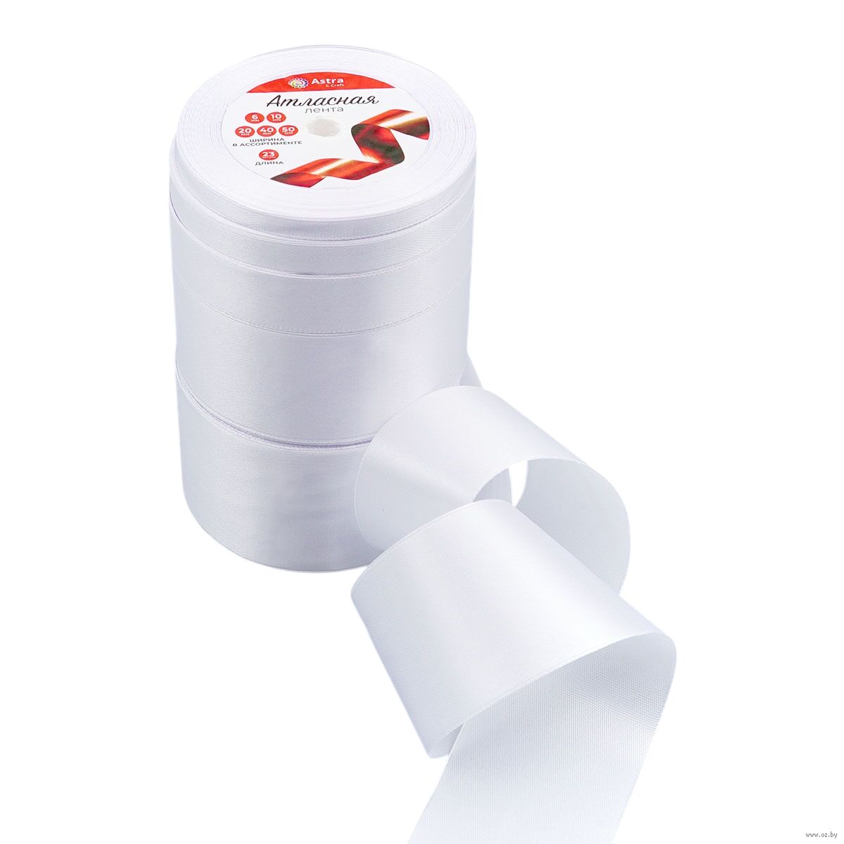 В наборе 5 цветов ленты шириной 0,6 см, 1 см, 2 см, 4 см, 5 см.