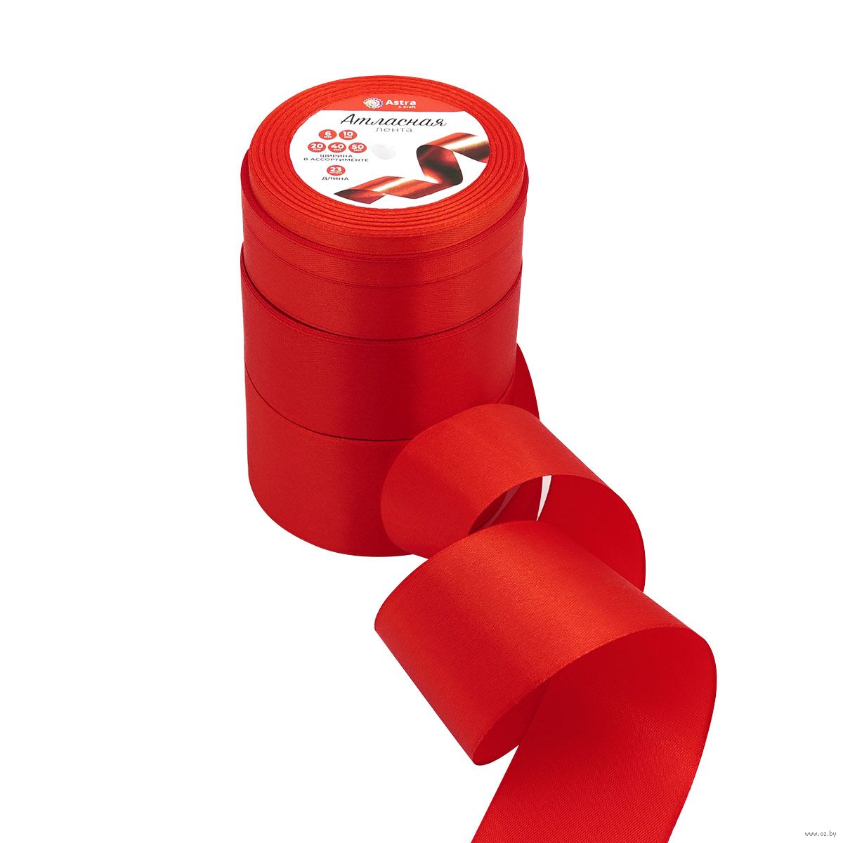 В наборе 5 цветов ленты шириной 0,6 см, 1 см, 2 см, 4 см, 5 см.