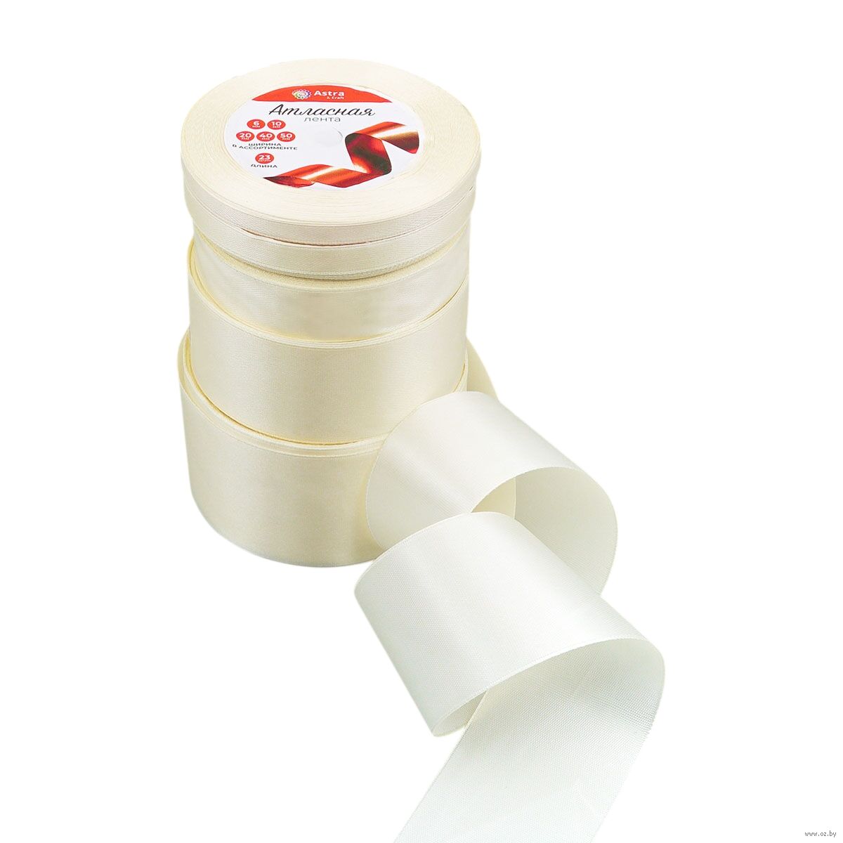 В наборе 5 цветов ленты шириной 0,6 см, 1 см, 2 см, 4 см, 5 см.