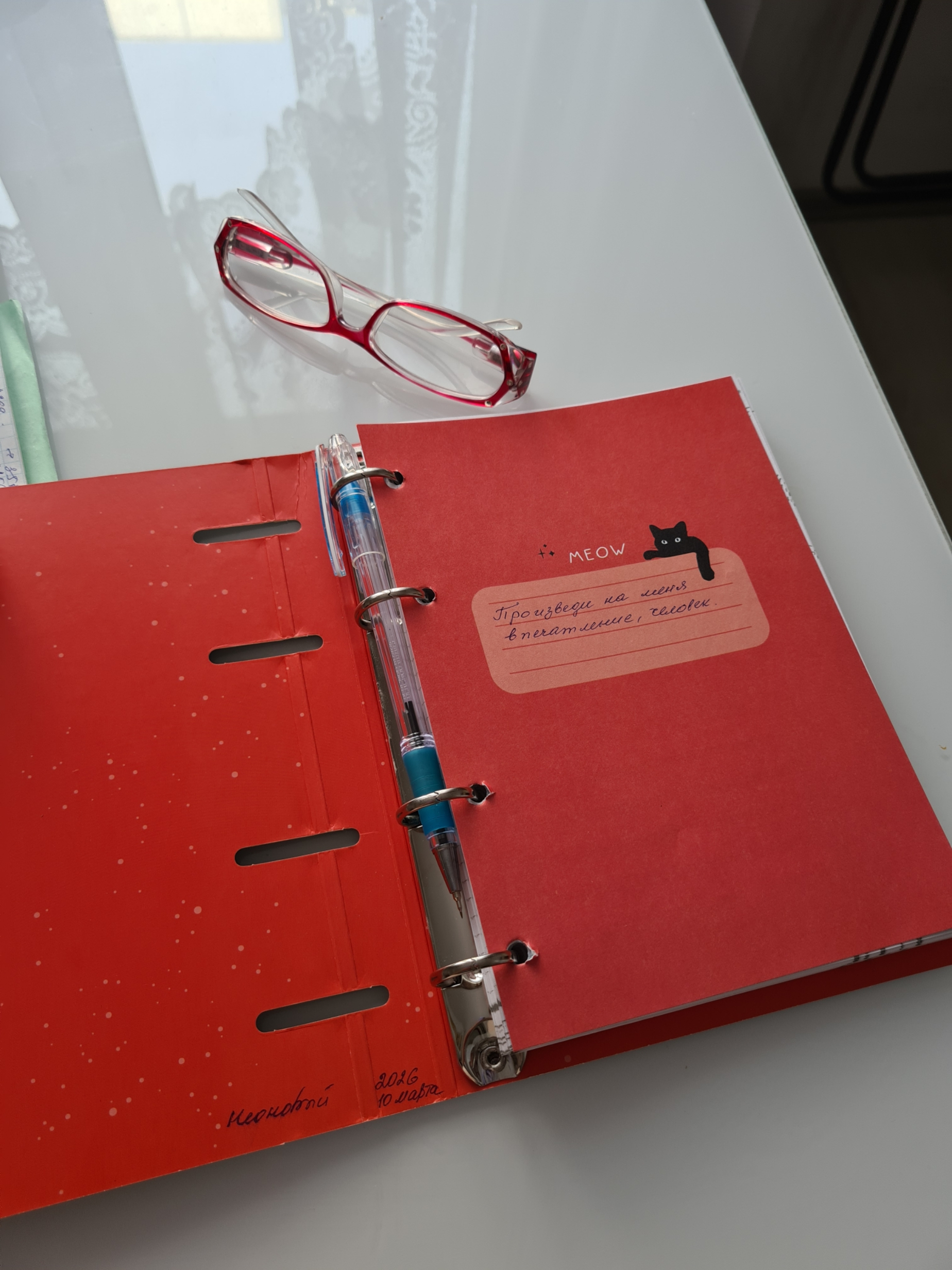 Тетрадь на кольцах удобна для большого объема записей. Легко вынимать и вставлять дополнительные листы.