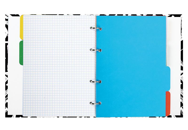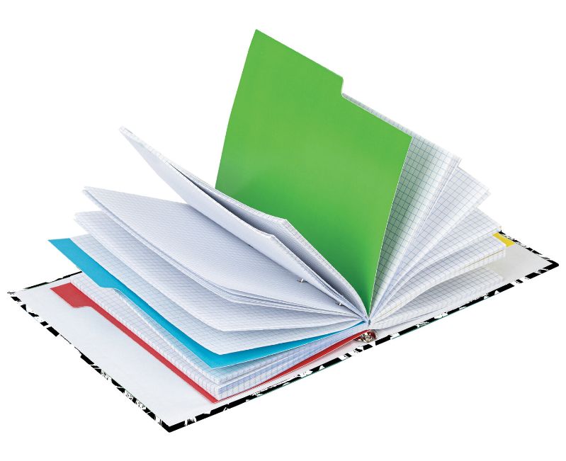 Оборудована кольцевым механизмом с 4-мя кольцами для подшивки сменных блоков, что позволит носить на учебу/работу всего одну тетрадь с возможностью добавления и замены листов. Тетрадь снабжена разделителями для удобства ведения разных тематик.