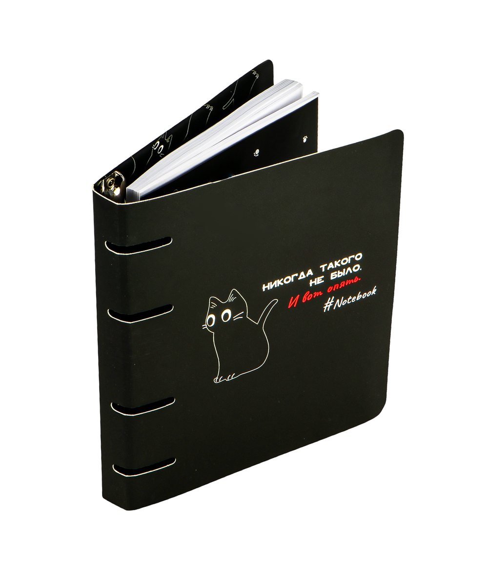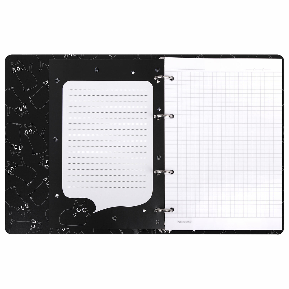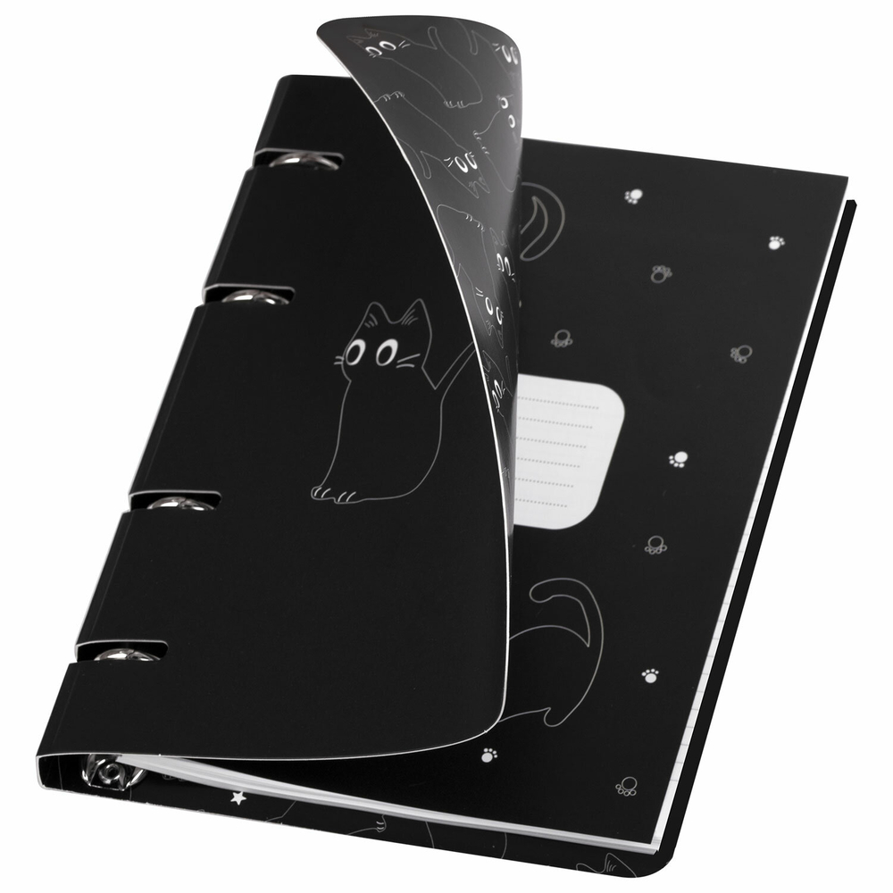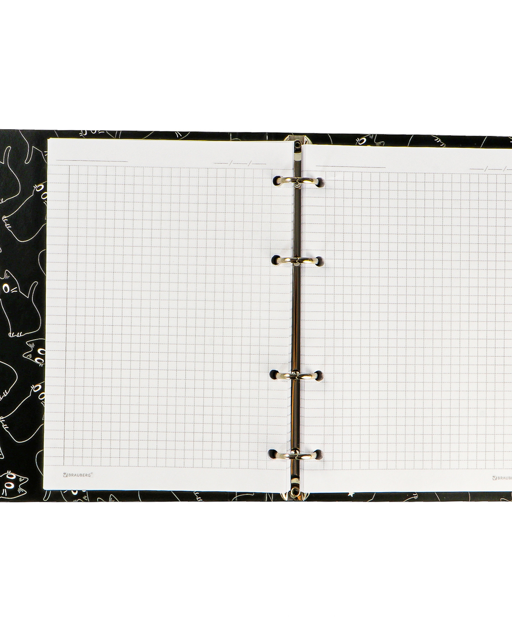 Снабжена кольцевым механизмом с 4 кольцами для подшивки сменных блоков, что позволит брать на учебу/работу всего одну тетрадь с возможностью добавлять и менять листы.