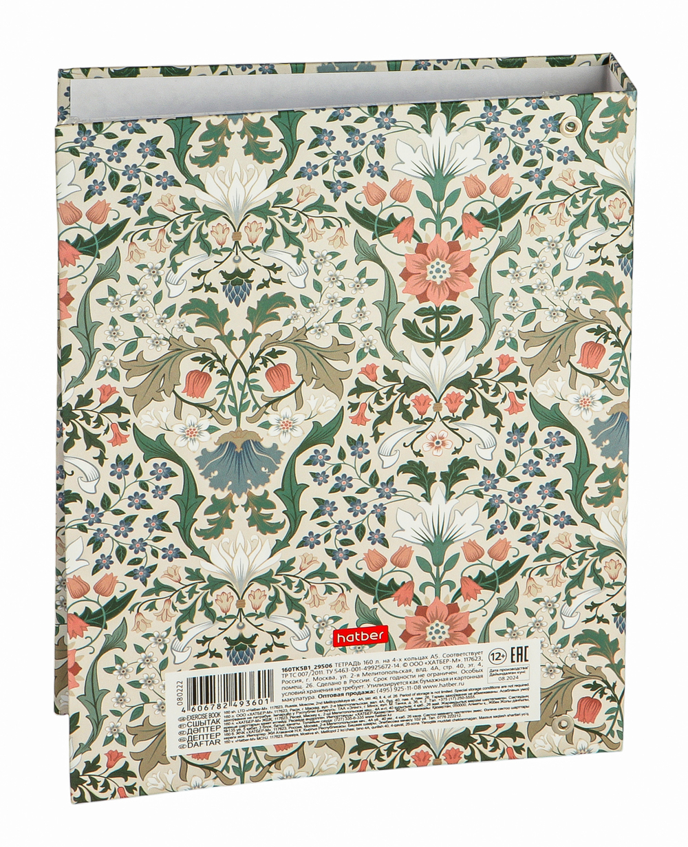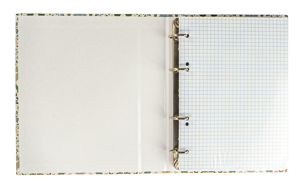 Тетрадь формата А5, 160 листов. Обложка – твердая, матовая ламинация. Внутренний блок – офсет, клетка. Скрепление – 4 кольца. Кольцевой механизм обеспечивает удобную и быструю смену или добавление листов.
