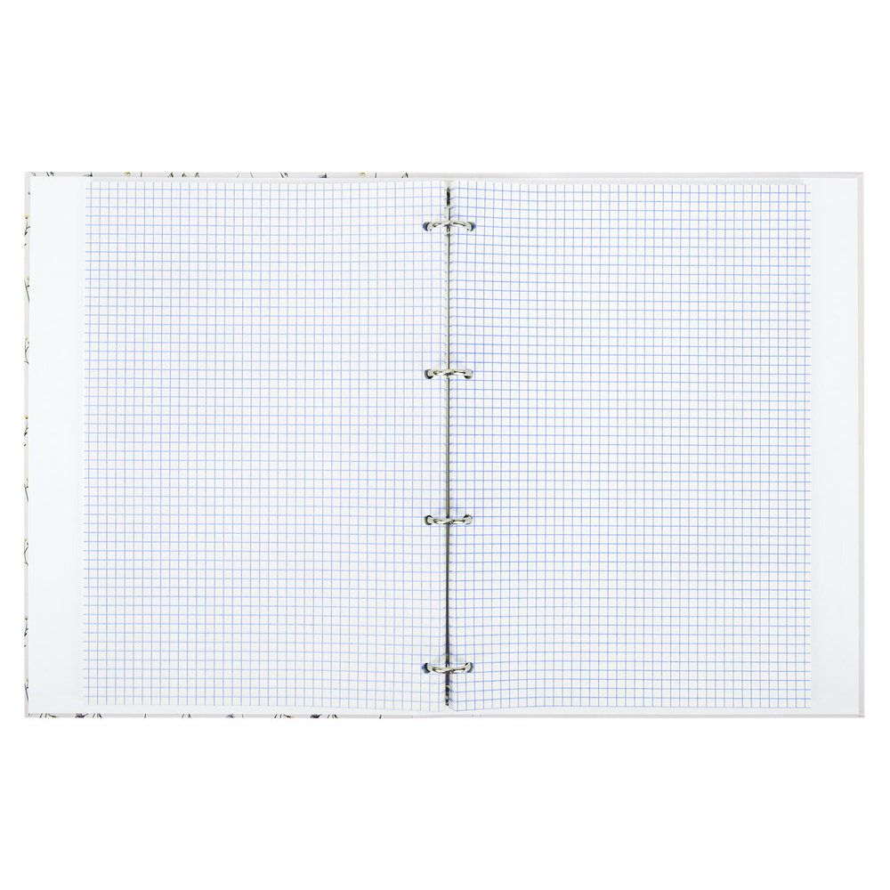 Увеличенный формат А4 предназначен для ведения большего объема записей. Оборудована кольцевым механизмом с 4 кольцами для подшивки сменных блоков, что позволит носить на учебу или работу всего одну тетрадь с возможностью добавлять и менять листы.