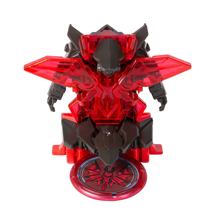 В набор входит машинка-трансформер (7х7х9 см), пусковая установка Лончер (13х6х5 см), энергетический диск, инструкция, наклейки. Игрушка упакована в коробку с окном 17х20х8 см.